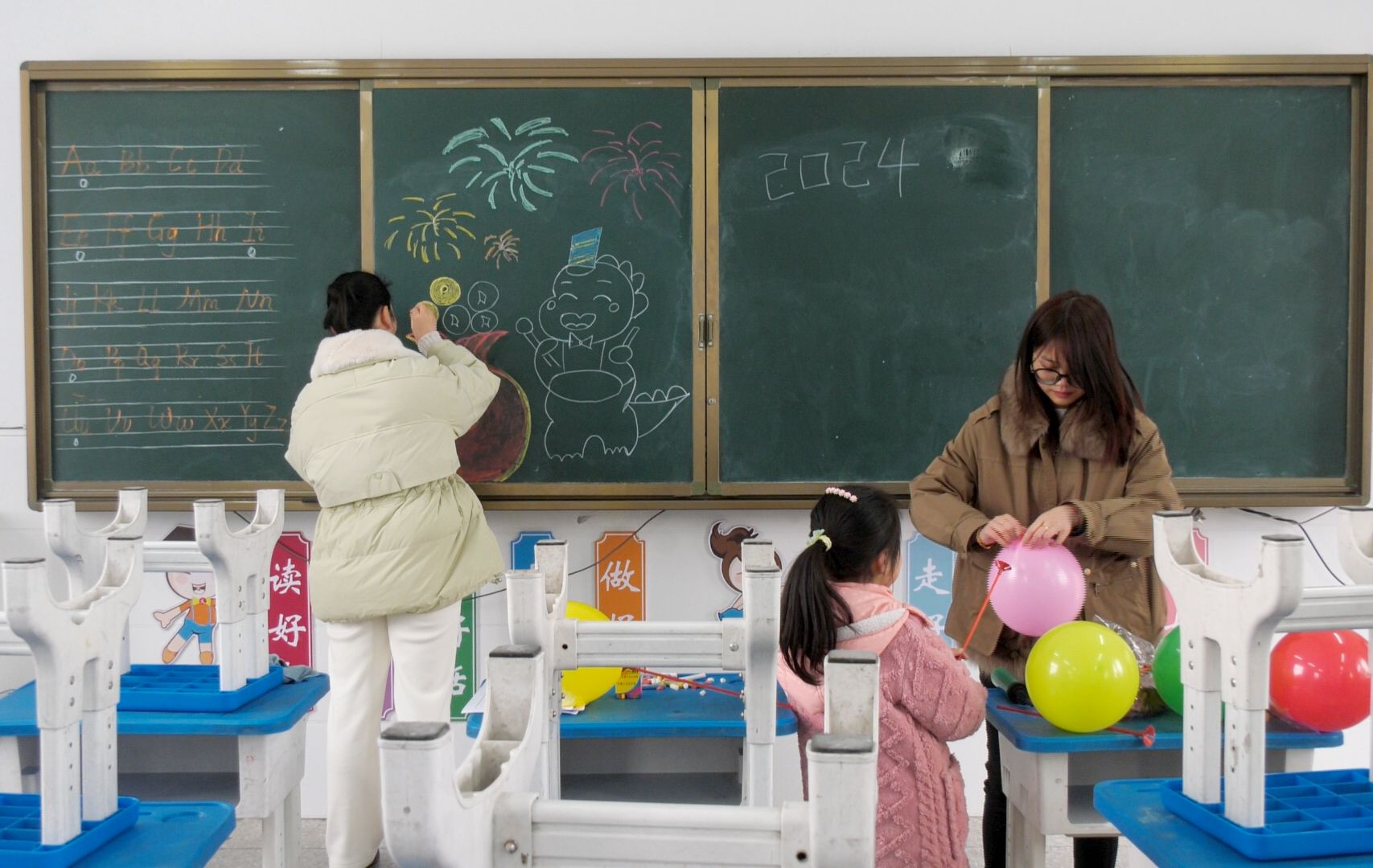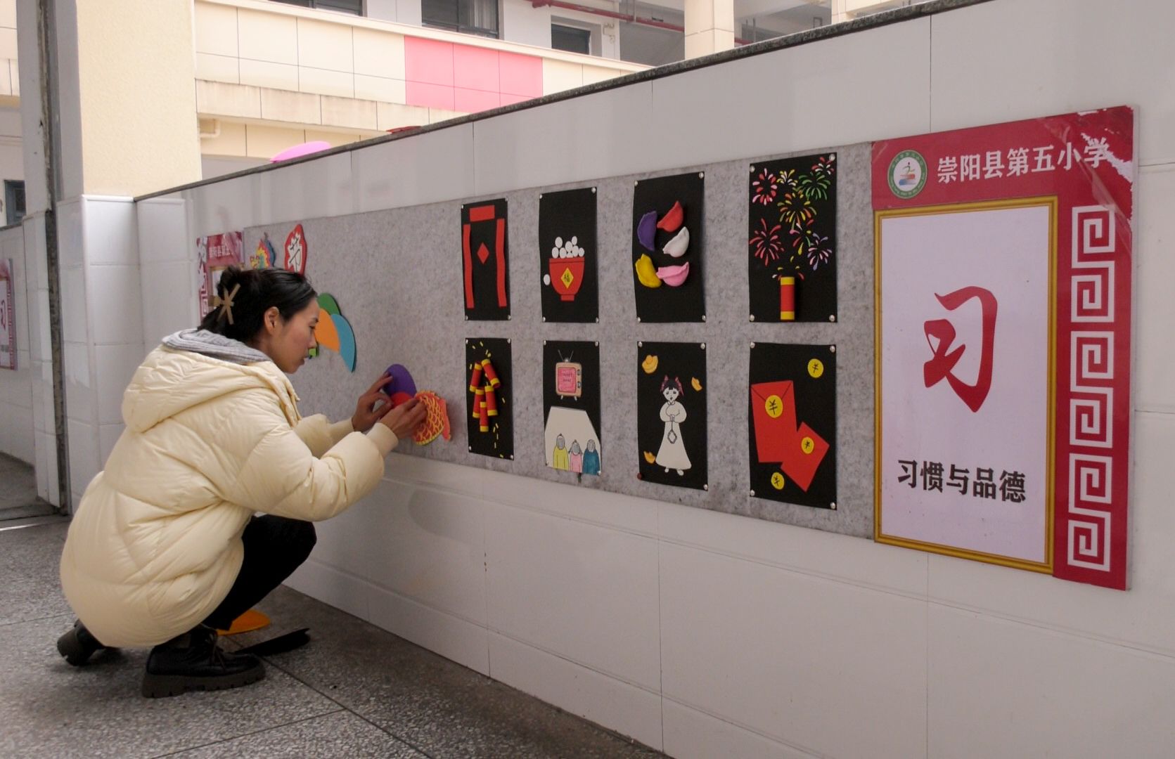 2月27日,记者走进崇阳县第五小学,到处都是教职员工忙碌的身影。校园里,教师们铆足劲儿地铲除积雪、清扫落叶、擦拭门窗;教室内,教师们细心地张贴手工制作的贴画、悬挂各种颜色的气球、绘制生动活泼的黑板报,精心装扮教室,为即将返校的学生们营造一个温馨愉悦的开学氛围。