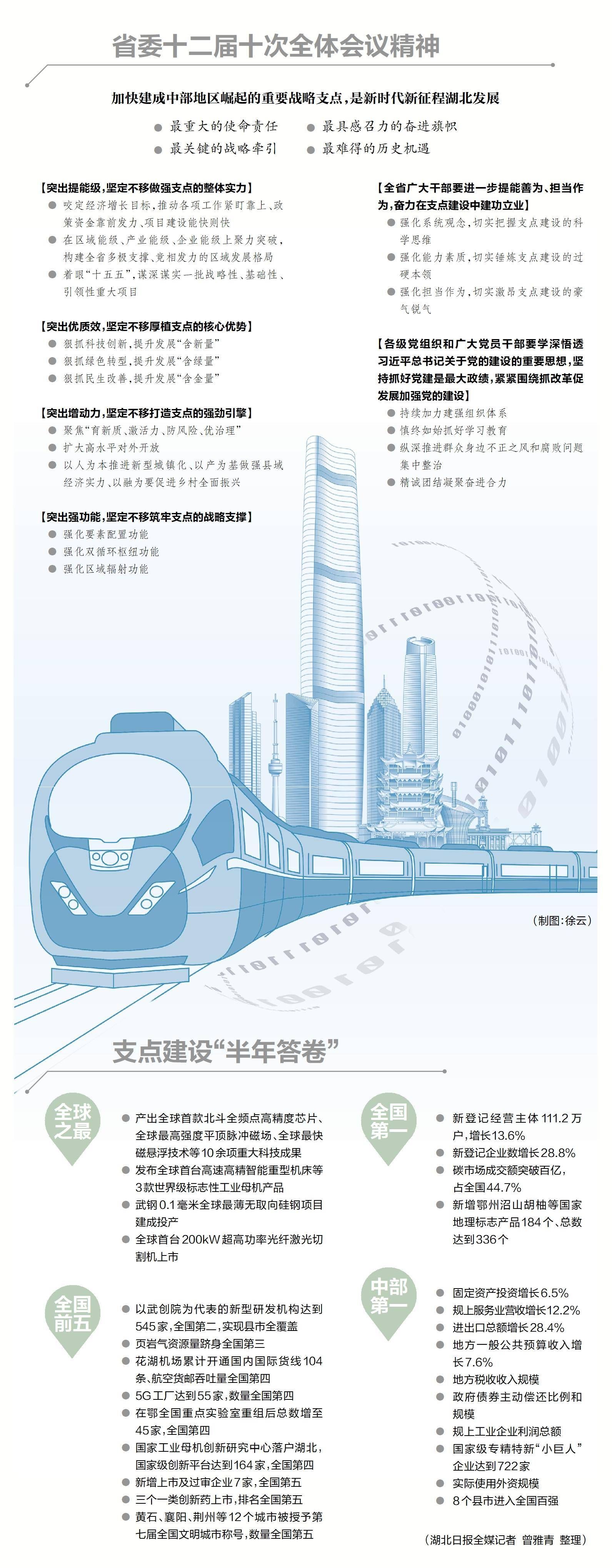 在全党开展深入贯彻中央八项规定精神学习教育的关键阶段,在深入贯彻习近平总书记考察湖北重要讲话精神、推进支点建设“一年开新局”的重要节点,8月6日,省委十二届十次全会在武汉召开。