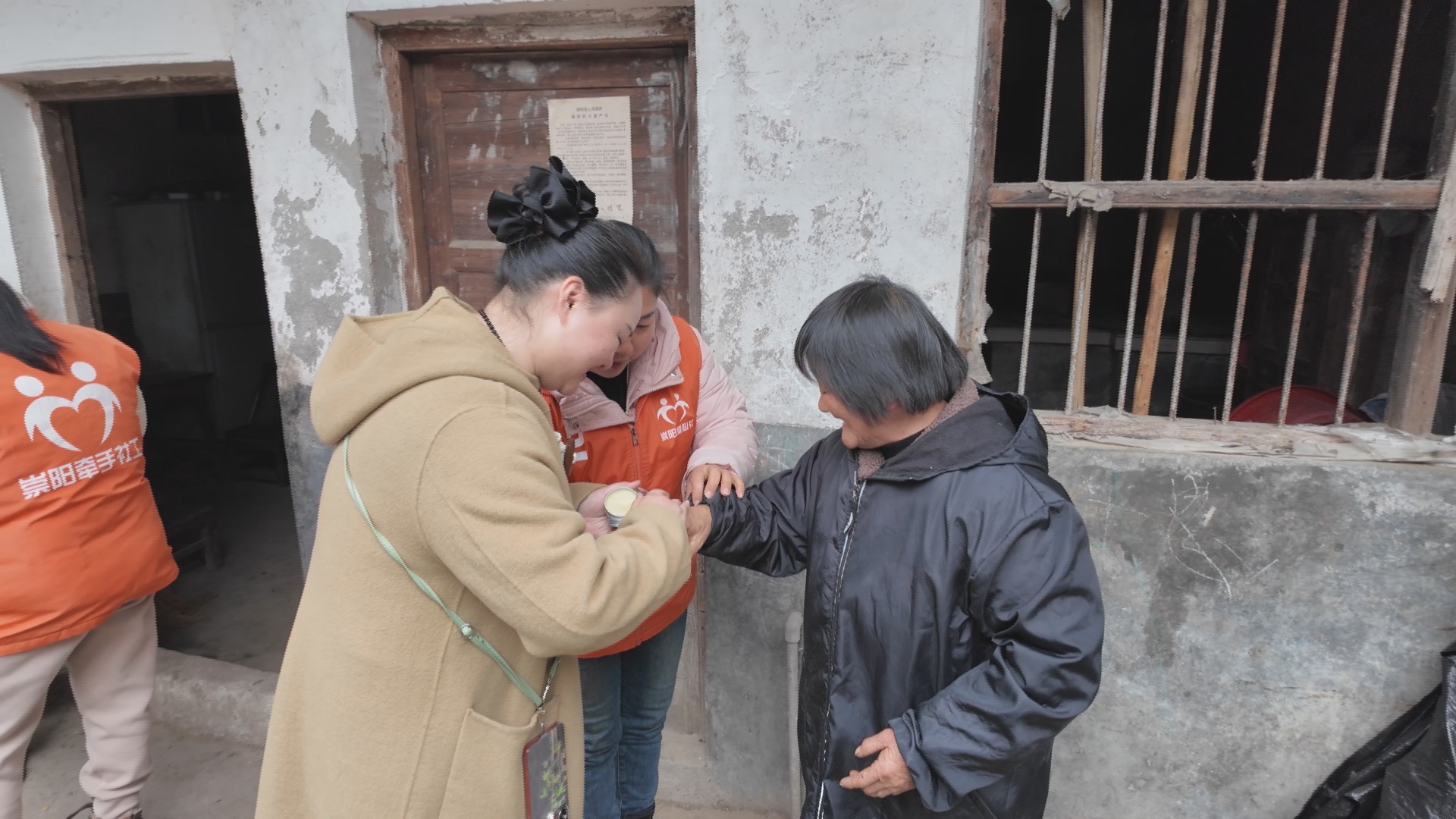 随后,打包整齐的手足膏被志愿者们分装入袋,按照预先划分的片区分组出发,将温暖送到高龄老人家门口。每到一户,志愿者为老人递上手足膏,一边细致演示涂抹方法、叮嘱保存要点,一边轻声询问老人的饮食起居与身体近况,让每一次送达都成为一次贴心地陪伴。