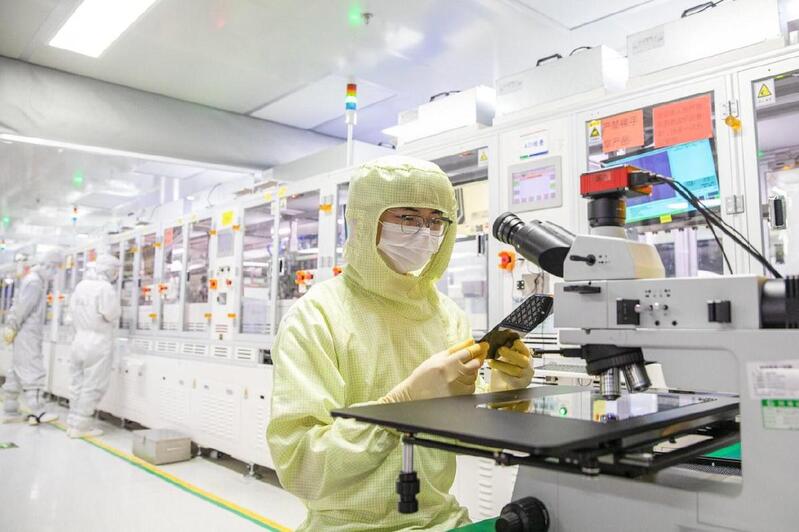 湖北智慧光子技术有限公司无尘车间,员工在自动化生产线上赶制激光器订单。