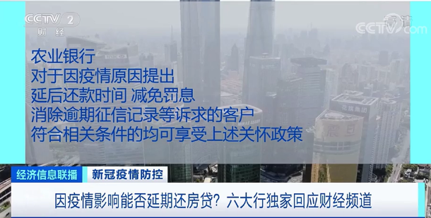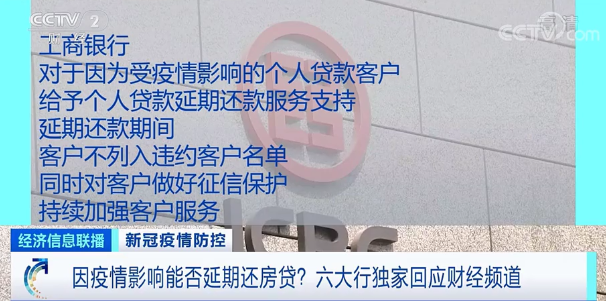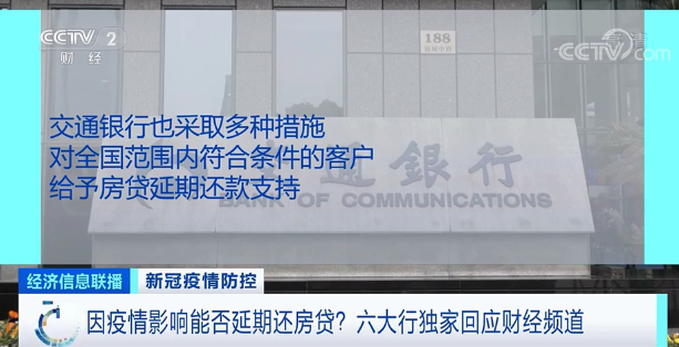 最近一段时间,不少人反映,疫情的持续对个人收入产生影响,出现了房贷还款困难的问题。针对这类群体,部分金融机构提出延期还款政策。7日,央视财经频道记者从工、农、中、建、交、邮储六家国有大型商业银行获得独家回应,受疫情影响,满足条件的客户,可申请房贷延期还款。