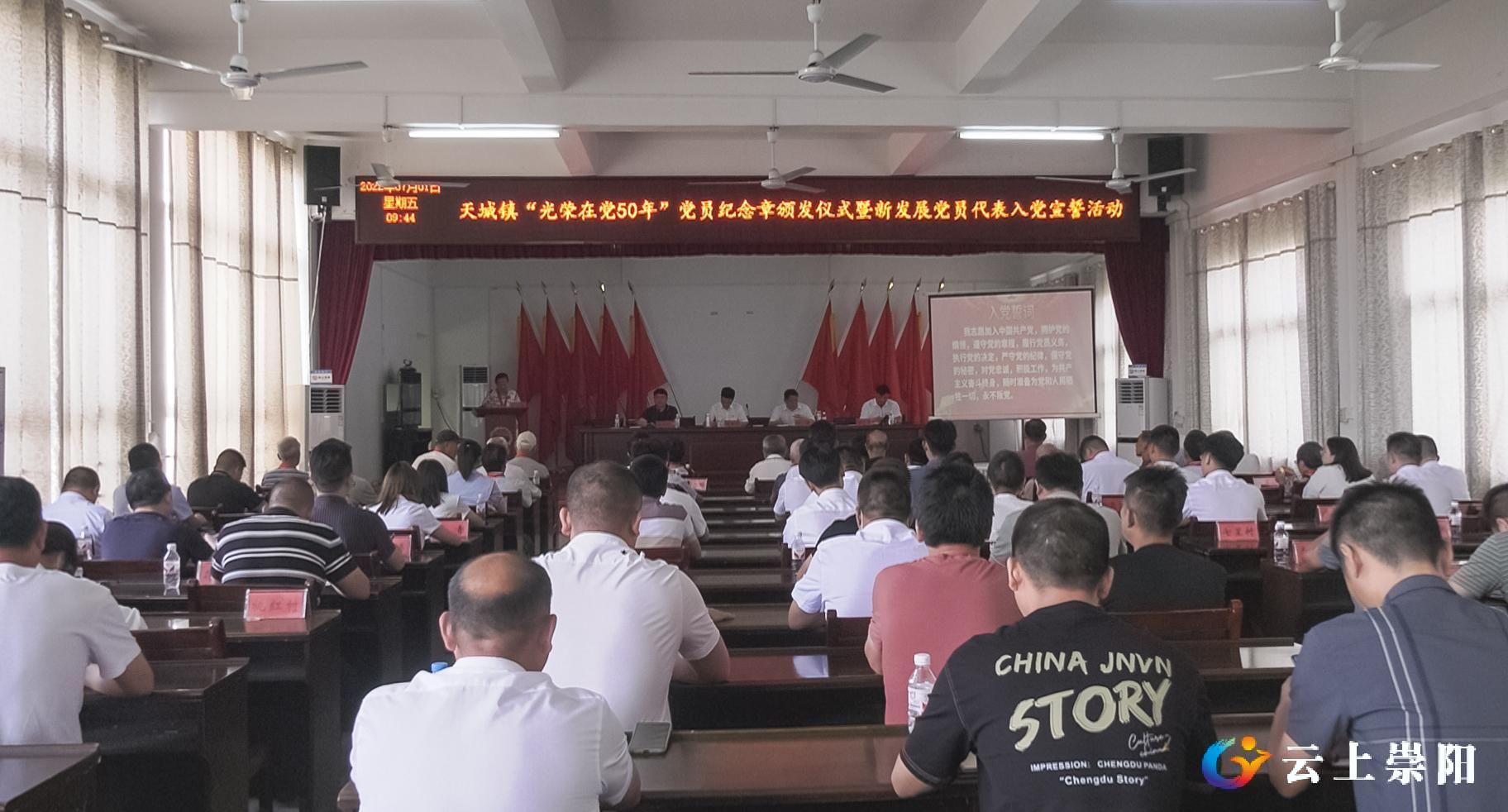 7月1日上午,天城镇举办2022年度纪念章颁发仪式暨新发展党员代表入党宣誓活动。县委常委、副县长汪新虎,县人大常委会副主任石浪出席活动。
