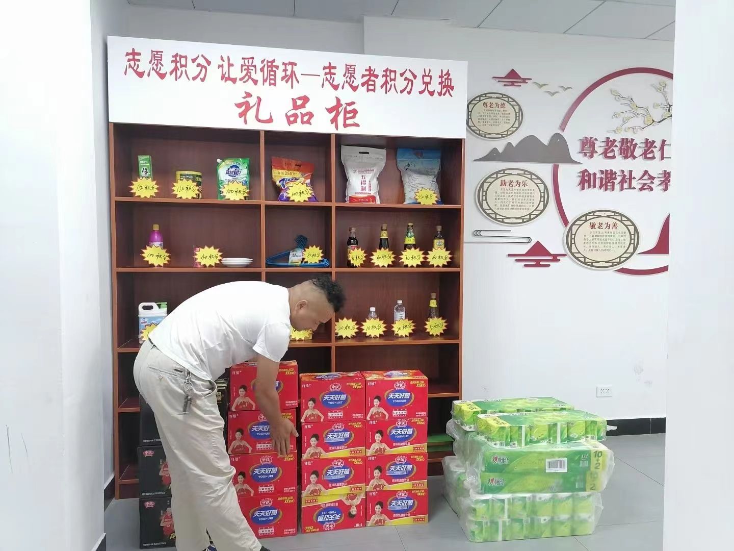 “参与一个小时的志愿服务可以获得10个积分,就能到积分超市兑换一包纸巾。随着志愿时长增加,积累的积分越多,就能兑换更多的物品。这些物品都是群众生活所需,很实在的”,负责碧田社区志愿服务工作的社工陈伟介绍道。