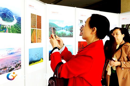 县委书记、县人大常委会主任杭莺等县领导到现场观看摄影展(周伟摄)