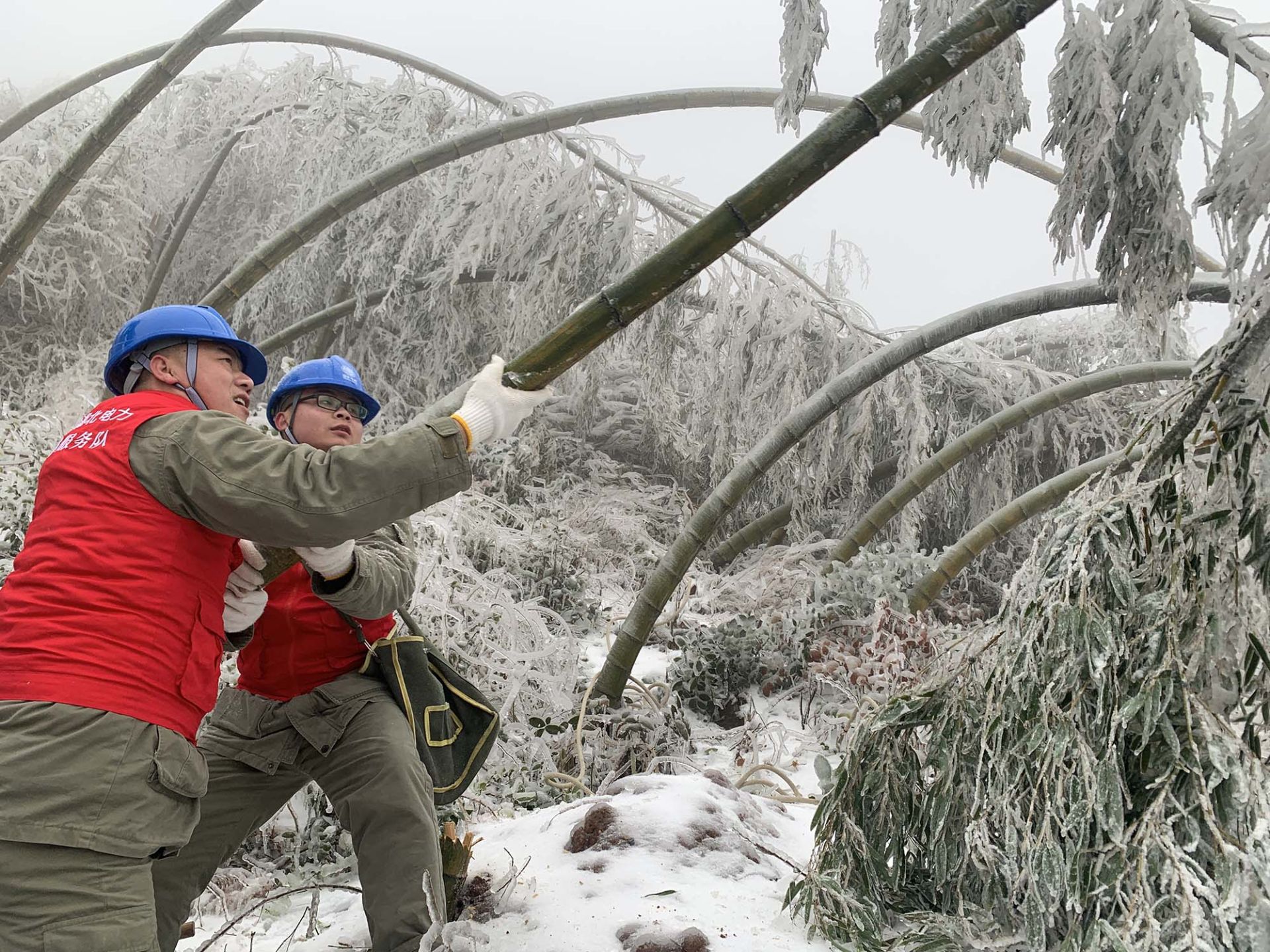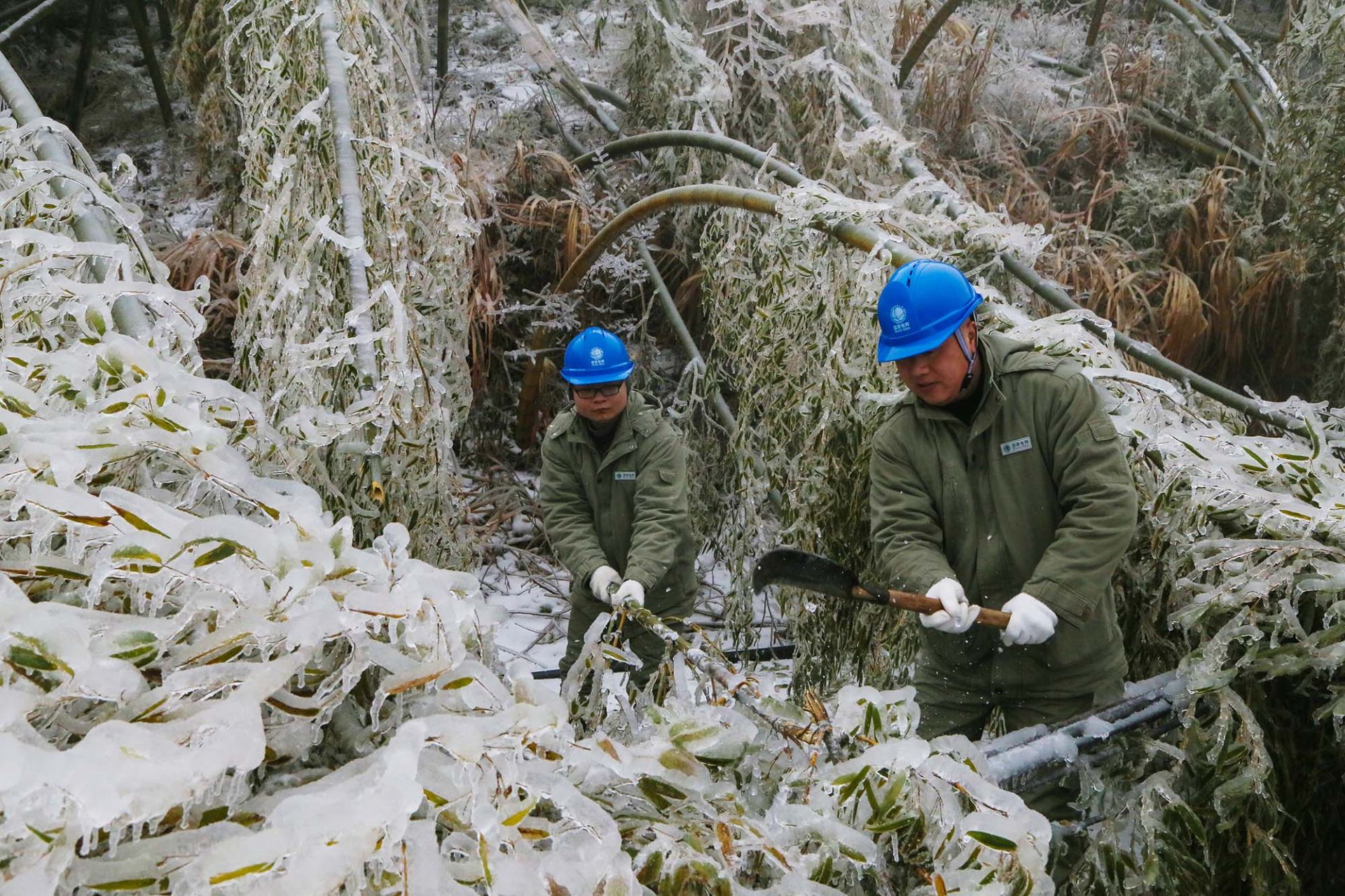 2月4日,金沙片区被冰雪覆盖,大地铺白,竹木挂冰。金豪是国网崇阳县供电公司金沙服务部外勤班的一名“新兵”,今天是他第一天正式上班,头戴安全帽,手拿柴刀和绳子,跟在老师傅身后。爬雪山、穿竹海、清竹障、除覆冰,在师傅的指导下,他做得有模有样。