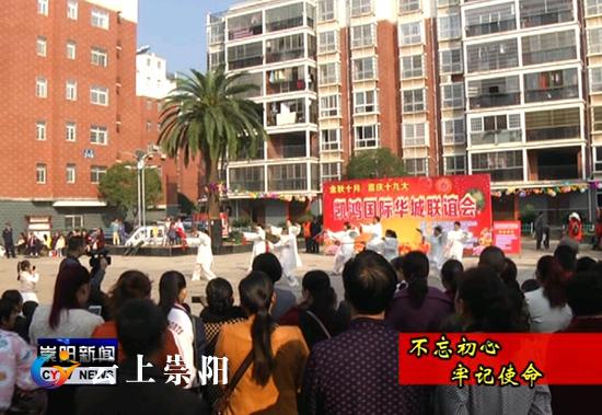 云上崇阳讯 记者沈强报道:10月21日,在凯鸿国际华城小区广场上,小区居民载歌载舞,喜庆党的十九大胜利召开。