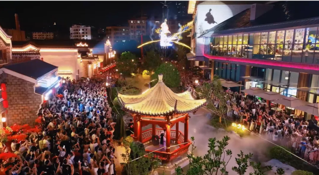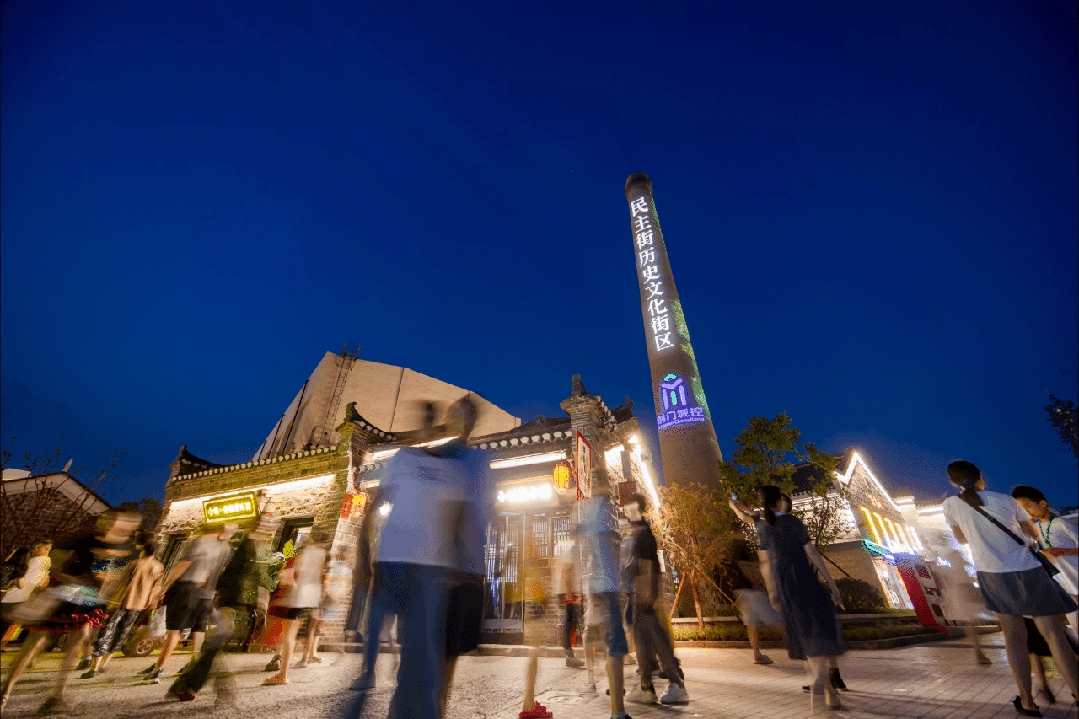 夜幕降临,华灯点亮千年屋檐,民主街迎来了它作为“流量新地标”的高光时刻。此时,街区已是人山人海,摩肩接踵。霓虹闪烁,勾勒出飞檐斗拱的轮廓。
