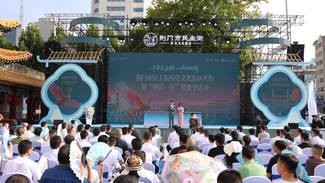 2025年8月1日,一个荆门市民期盼已久的日子。早晨八点,阳光投射在“民主街”三个鎏金大字上,红绸一落,现场响起热烈的掌声与欢呼声,沉寂二十余载、历经三年修缮的荆门市民主街历史文化街区正式敞开怀抱,开启文商旅融合的城市消费新篇章。