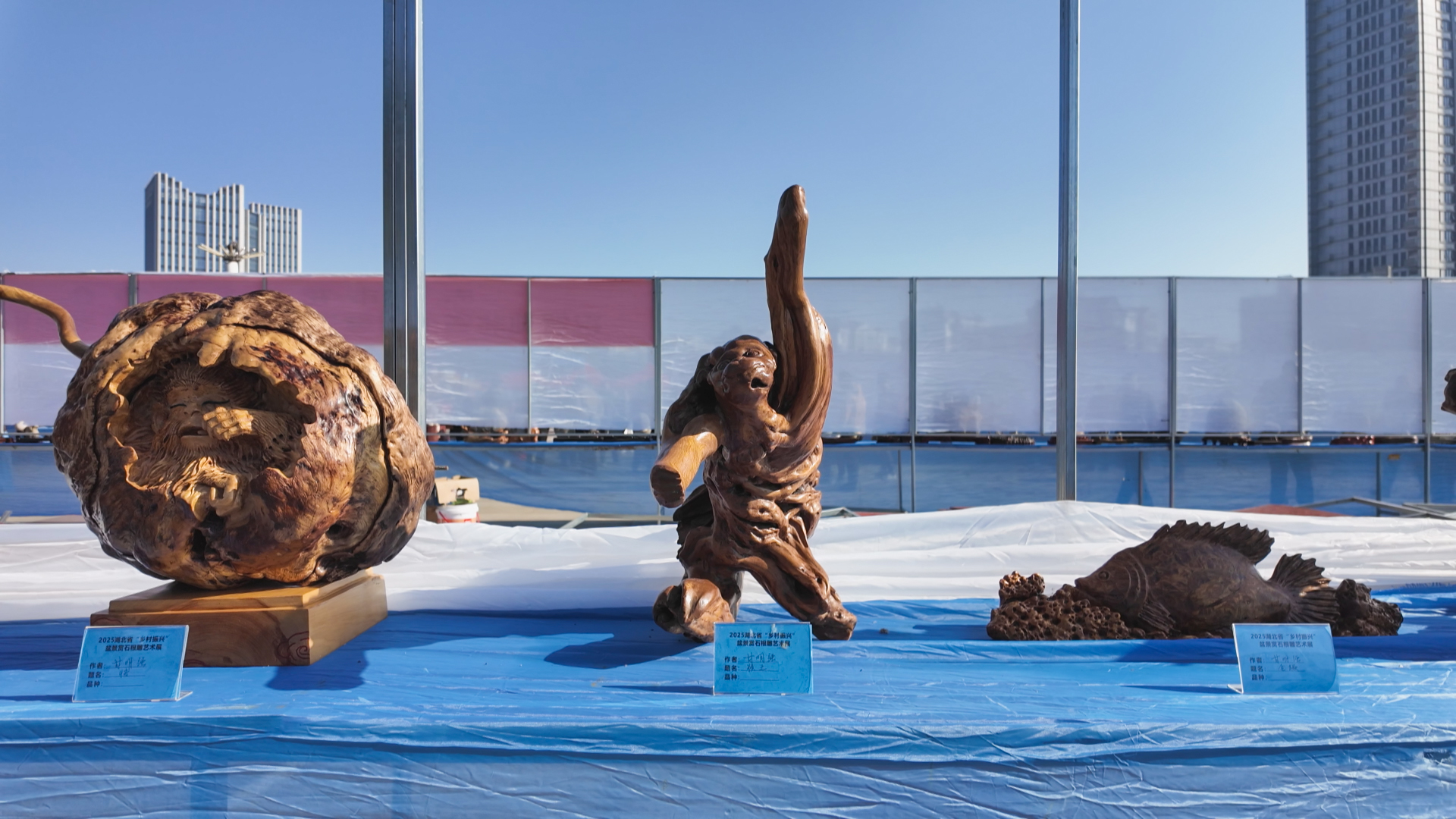 展览特别设置了市级非物质文化遗产代表性项目崇阳根雕展示区,集中呈现这项传统技艺的独特魅力。崇阳境内山石资源丰富,为盆景、赏石、根雕、艺术发展提供了得天独厚的自然条件,也孕育了一批本土艺术爱好者。