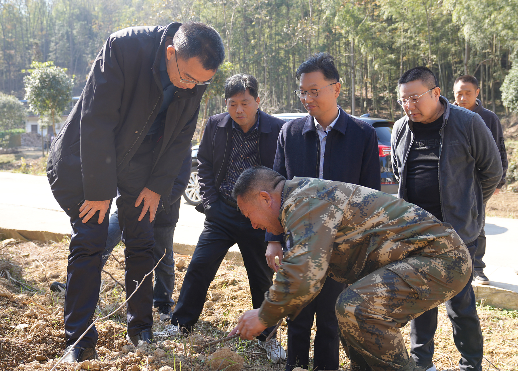 授牌仪式后,湖北福人健康产业集团一行实地考察了东源村十四组(乌泥冲)的林下黄精示范基地和十三组石菖蒲基地,详细查看中药材生长态势,询问林下种植管护技术要点,就基地规模化扩建、产业链延伸等问题与基地负责人深入交流,为后续合作明确具体方向。