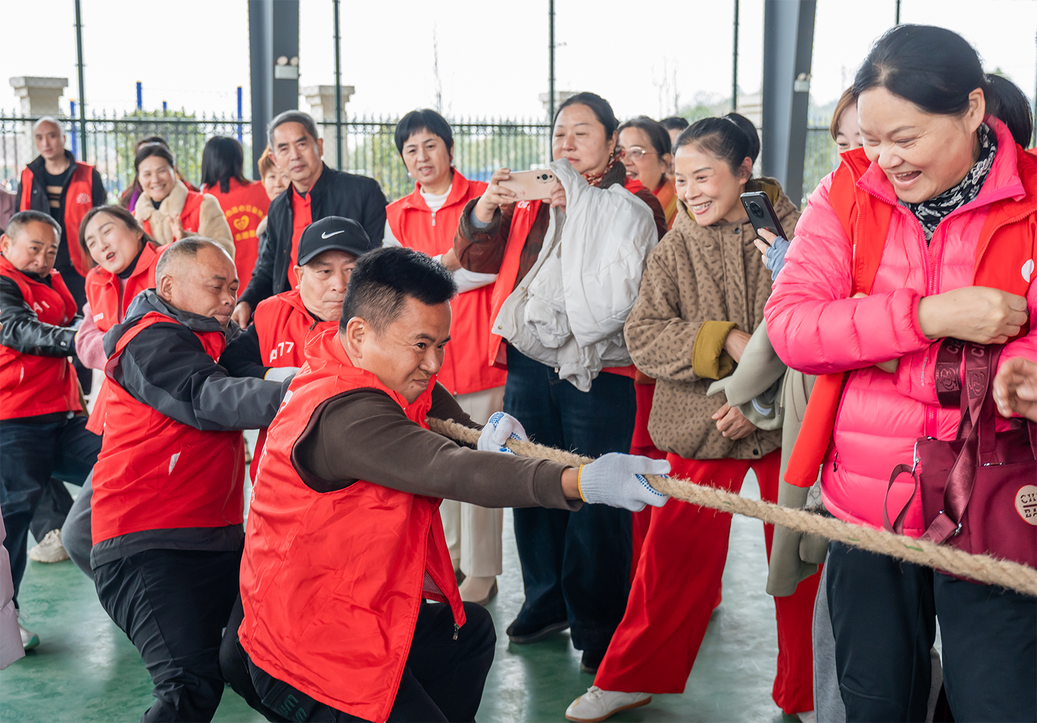 活动现场暖意融融,文艺节目轮番登场,歌声和舞姿里满是温情。太极爱好者凝神演练,一招一式尽显从容风采;拔河赛场更是气氛热烈,队员们攥绳发力,观众呐喊助威,加油鼓劲声此起彼伏,将志愿者们团结协作、奋勇争先的精神风貌展现得淋漓尽致。