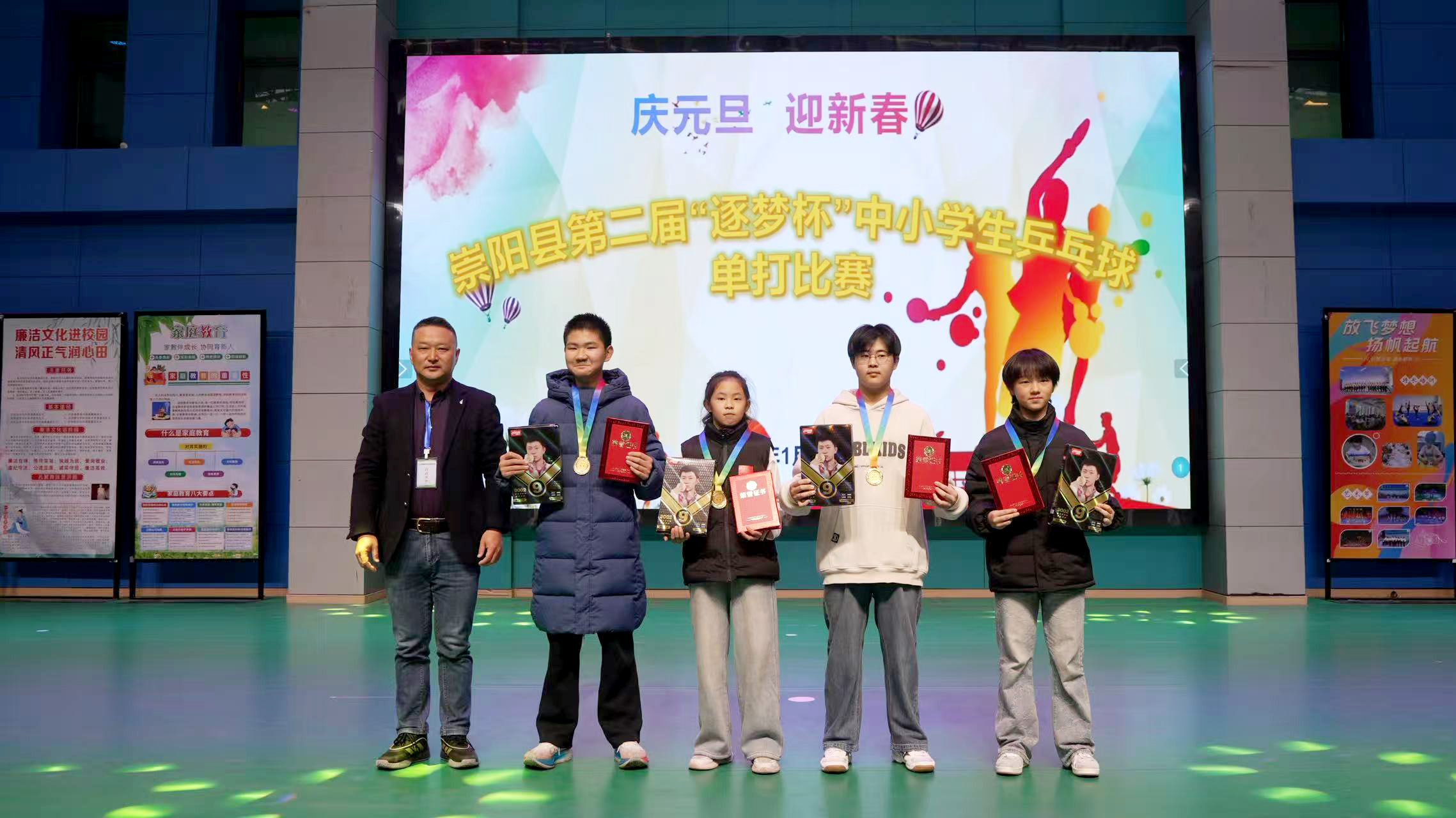 1月3日,由崇阳县教育局青少年校外活动中心主办的第二届“逐梦杯”中小学乒乓球单打比赛顺利举办,全县各中小学乒乓球爱好者齐聚赛场,一展青春风采。