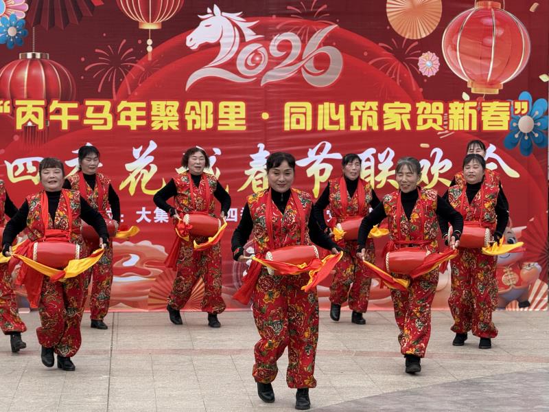 马年春节临近,崇阳县处处洋溢着喜庆气氛,2月1日,天城镇大集社区、四季花城小区党支部与鑫连鑫物业联合举办的“丙午马年聚邻里·同心筑家贺新春”春节联欢会欢乐开幕,吸引众多居民参与。