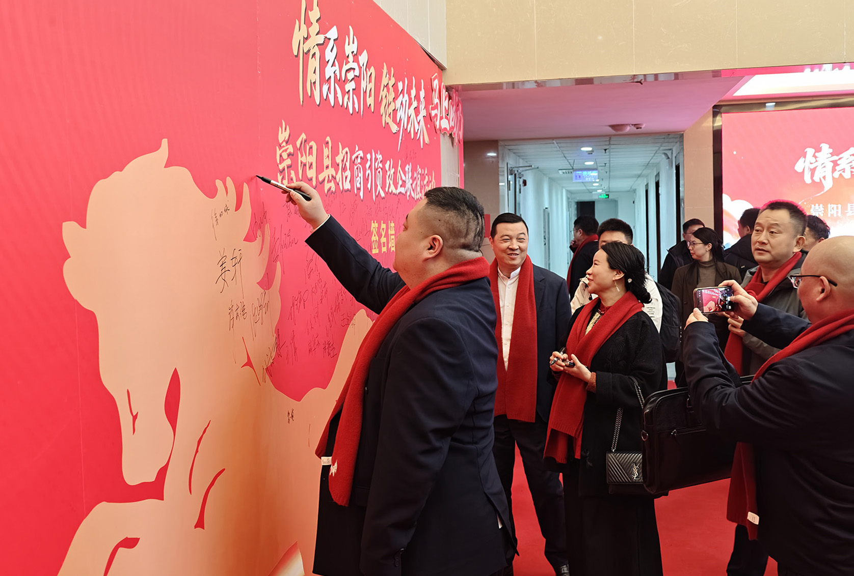 活动伊始,企业家代表们陆续抵达会场,在签名墙上郑重签下名字,留下对崇阳发展的美好期许。现场高朋满座,嘉宾云集,既有远道而来的新朋友,也有扎根崇阳、奉献崇阳的老朋友,处处洋溢着“崇德向善、热情好客”的浓厚氛围。