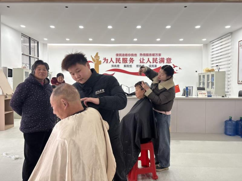 “村里联系我时,我立刻答应了,能为乡亲们做点力所能及的事,用自己的手艺回馈家乡,我很开心。”爱心理发店主汪雷说道。