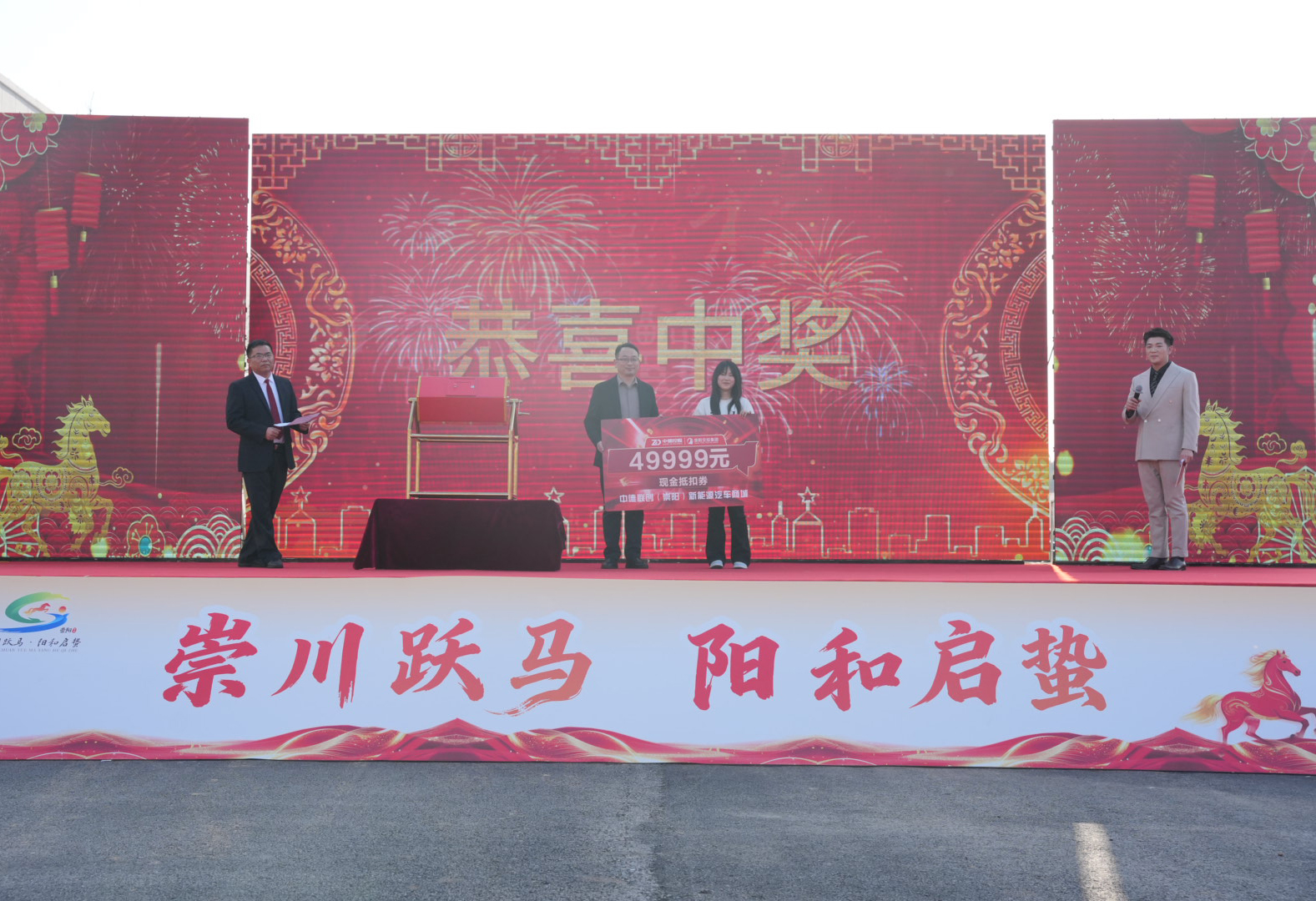 2月14日,腊月二十七,新落成的中德联创(崇阳)新能源汽车商城内人声鼎沸、喜乐融融,锣鼓声、欢呼声、掌声交织回荡,汇成一曲热闹祥和的新春欢歌。“崇川跃马·阳和启蛰”崇阳县2026年新春商文旅融合促消费活动中最受关注的“大美崇阳”集卡活动第一轮抽奖在此火热启幕,为返乡群众、市民和广大游客送上新春第一波重磅福利,也为即将到来的马年春节,增添了浓浓的喜庆氛围与烟火气息。