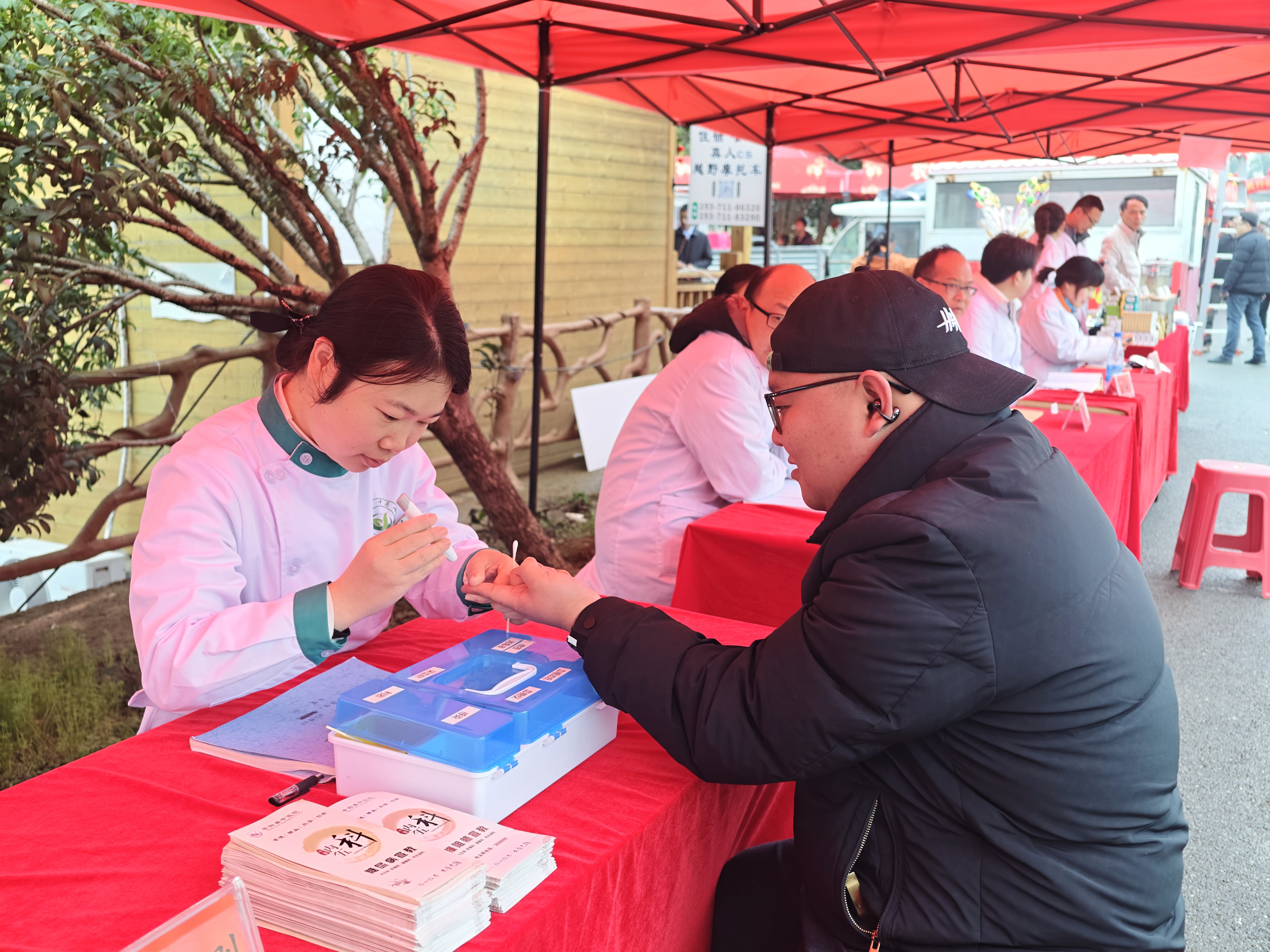 展区分为养生茶饮品鉴、知名专家义诊、免费血压血糖监测三大板块。养生茶饮品鉴区提供了护肝强肾、止咳化痰等多款应季茶饮,吸引了不少游客前来试饮,专业医师现场讲解茶饮配伍与饮用注意事项;在义诊专区,来自该院骨伤科、康复科、针灸推拿科等王牌科室的知名专家暖心接待每一位来访者,细致开展血压、血糖免费检测,结合中医辨证为群众提供专业问诊服务。针对冬春季常见疾病、老年病及慢性病防治等群众关心的问题,逐一进行答疑解惑,量身定制个性化中医药调理方案。