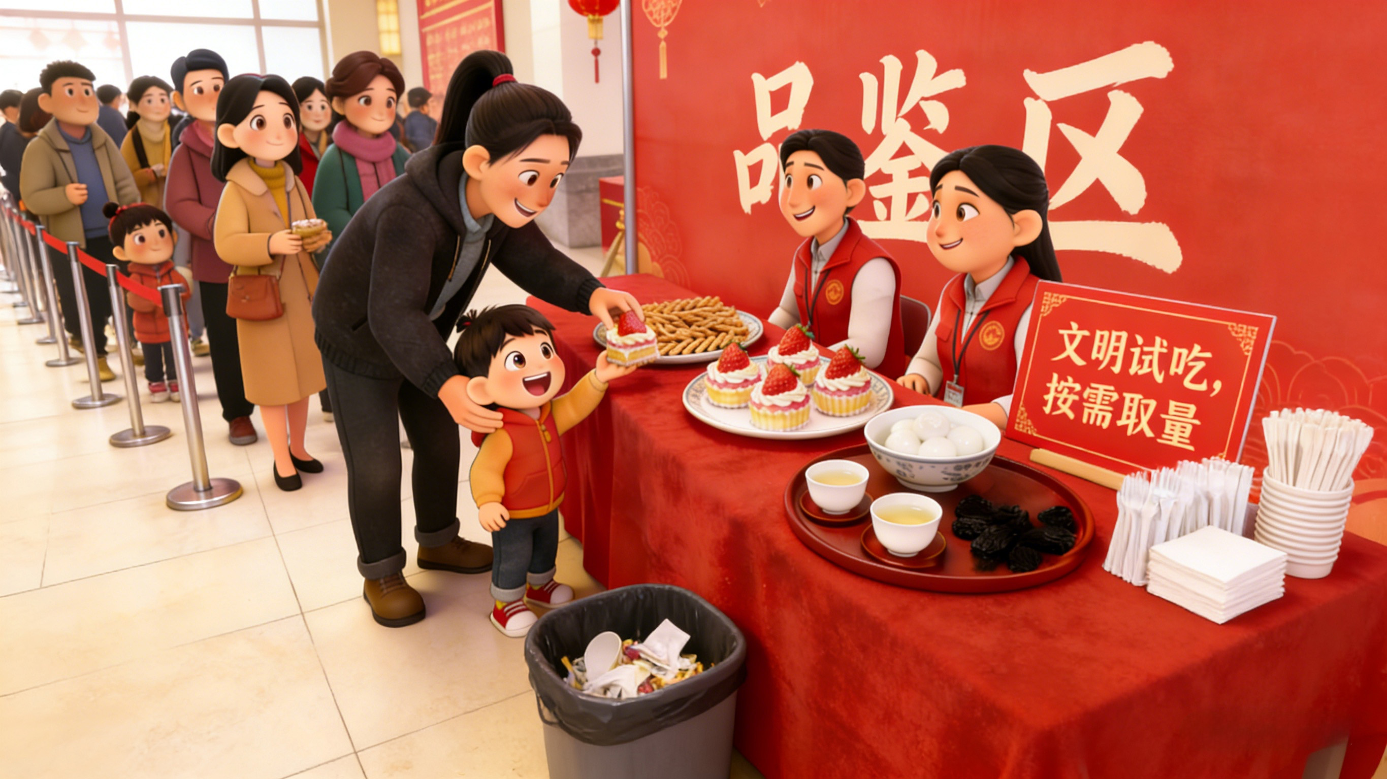 须知:请文明品尝,按需取用不浪费、不带走;自觉排队,保持整洁。