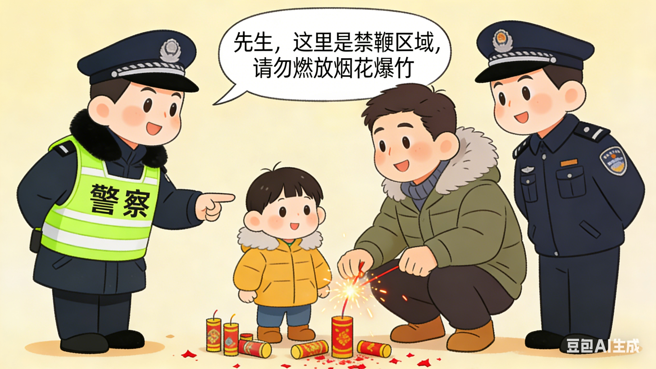 二、严守禁燃规定,杜绝火灾隐患。根据《烟花爆竹安全管理条例》及本县关于禁止燃放烟花爆竹的相关规定,全县禁放区域内严禁任何单位和个人燃放烟花爆竹。在非禁放区域燃放时,必须严格遵守相关规定,选择宽敞、安全的指定区域,远离易燃易爆物品、人员密集场所、居民住宅、文物保护单位、交通枢纽、山林草地等重点防火部位。未成年人燃放烟花爆竹必须有成年人陪同看护。燃放结束后,应及时清理现场,消除残留火种。