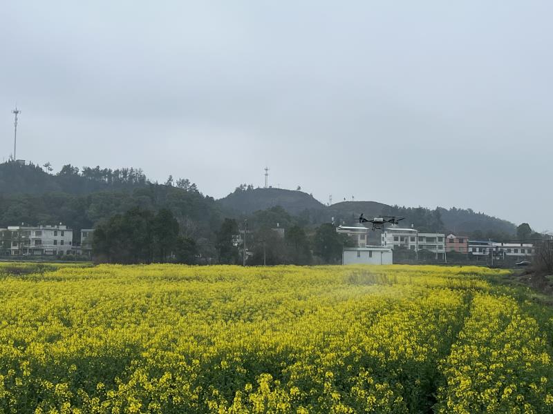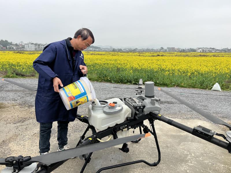 据悉,三月初既是油菜菌核病、蚜虫的高发期,也是防范“倒春寒”的关键窗口,更是油菜从盛花向灌浆过渡的重要阶段,直接影响着5月中旬收割的产量与品质。蔡军民结合自家油菜长势,重点推行油菜“一促四防”技术,通过无人机精准播撒,实现促生长、防病害、防早衰的综合效果。