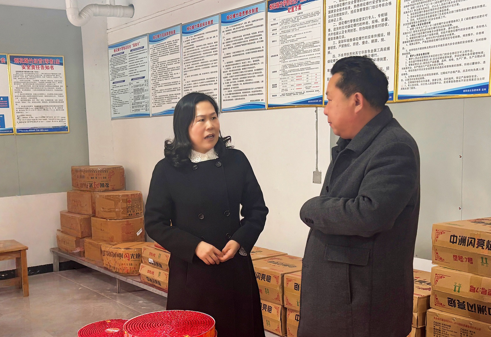 王顺荣指出,元宵节是烟花爆竹销售、燃放的高峰期,安全风险叠加,防控任务艰巨。各经营主体要切实履行安全生产主体责任,严格遵守烟花爆竹经营、储存相关规定,严禁超量储存、混存混放,加强销售人员安全培训,提升应急处置能力。要主动向消费者普及安全燃放知识,引导群众自觉抵制违规产品和不文明燃放行为,从源头上防范安全事故发生。