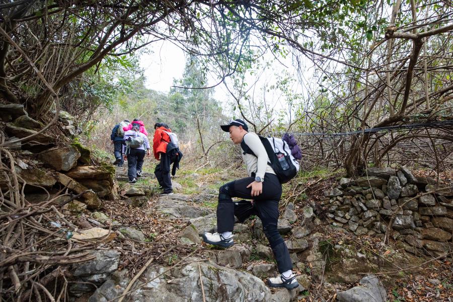 “看着周边城市都有成熟的徒步路线,咱们崇阳山好水美,怎么就没有一条能让大家走出家门、感受家乡风光的线路?”谈及“盘龙道”的发现契机,王军林的语气里满是对家乡的热爱与期许。作为一名资深户外爱好者,王军林常年穿梭于各地徒步路线,却始终遗憾家乡的山水美景未能被更多人看见。带着这份执念,他计划开辟一条专属崇阳的户外徒步路线,最初将开线终点定在了相邻的赤壁市,可在前期勘探过程中,家乡茅井村后山的一处防火线,意外闯入了他的视线。
