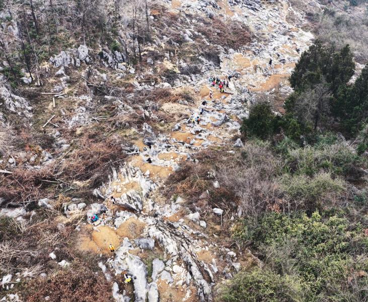 2026年1月13日,王军林正式开启开线探索,这也是他首次踏入这条源于林业防火需求修建的生态隔离带。不同于人工雕琢的徒步路线,这里石壁耸立、路径蜿蜒,遍布的天然石林造就了独特的“石林秘境”景观——巨大的石瀑倾泻而下,天然岩洞与石屋鬼斧神工,成片的野生棕榈树群在鄂南山地中格外罕见,登顶后,隽水河如玉带缠绕山脚,远处的洪下十里画廊、芳世湾大桥与葛仙山雄姿尽收眼底,一幅360度立体山水画卷徐徐展开,让王军林瞬间被震撼。
