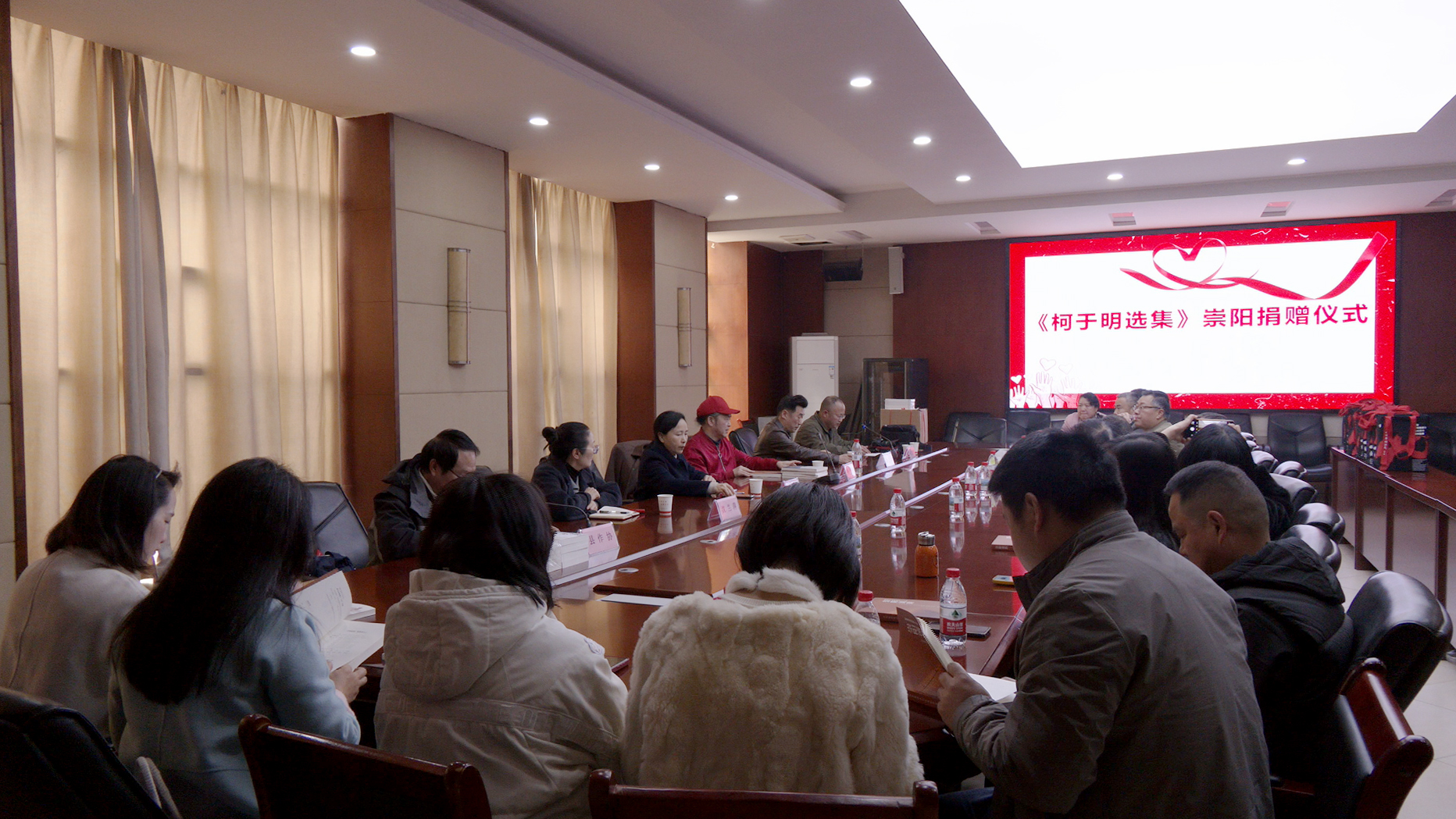 捐赠仪式现场,县作协主席详细介绍了柯于明先生的文艺成就与文学贡献。柯于明先生结合自身创作历程,分享了《柯于明选集》的编选思路与多年写作心得,鼓励崇阳文学爱好者扎根本土,用心用情讲好崇阳故事。并现场向崇阳县图书馆捐赠《柯于明选集》,为到场文友逐一赠送签名文集,以笔墨书香搭建起文学交流的暖心桥梁。
