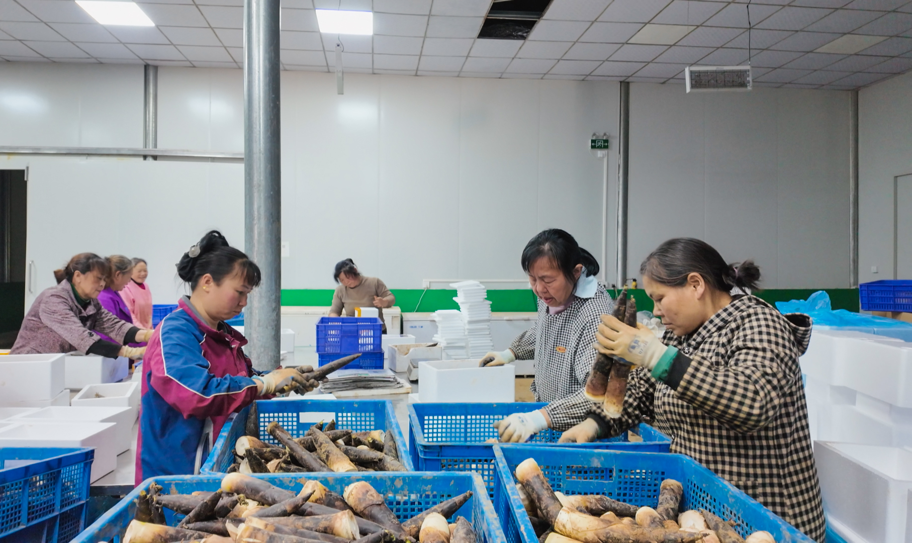 不加工,一场空。为补齐产业短板、提升产品附加值,崇阳县桂花泉镇全力延伸雷竹产业链,做强配套加工支撑。农户采收的鲜笋,第一时间送往位于该镇桂花村的湖北省绿峰农业科技开发有限公司开展标准化初加工,车间内分拣、清洗、预冷等工序高效运转,既有效拉长鲜笋销售窗口期、提升产品附加值,也为周边群众搭建起稳定的就近就业平台。