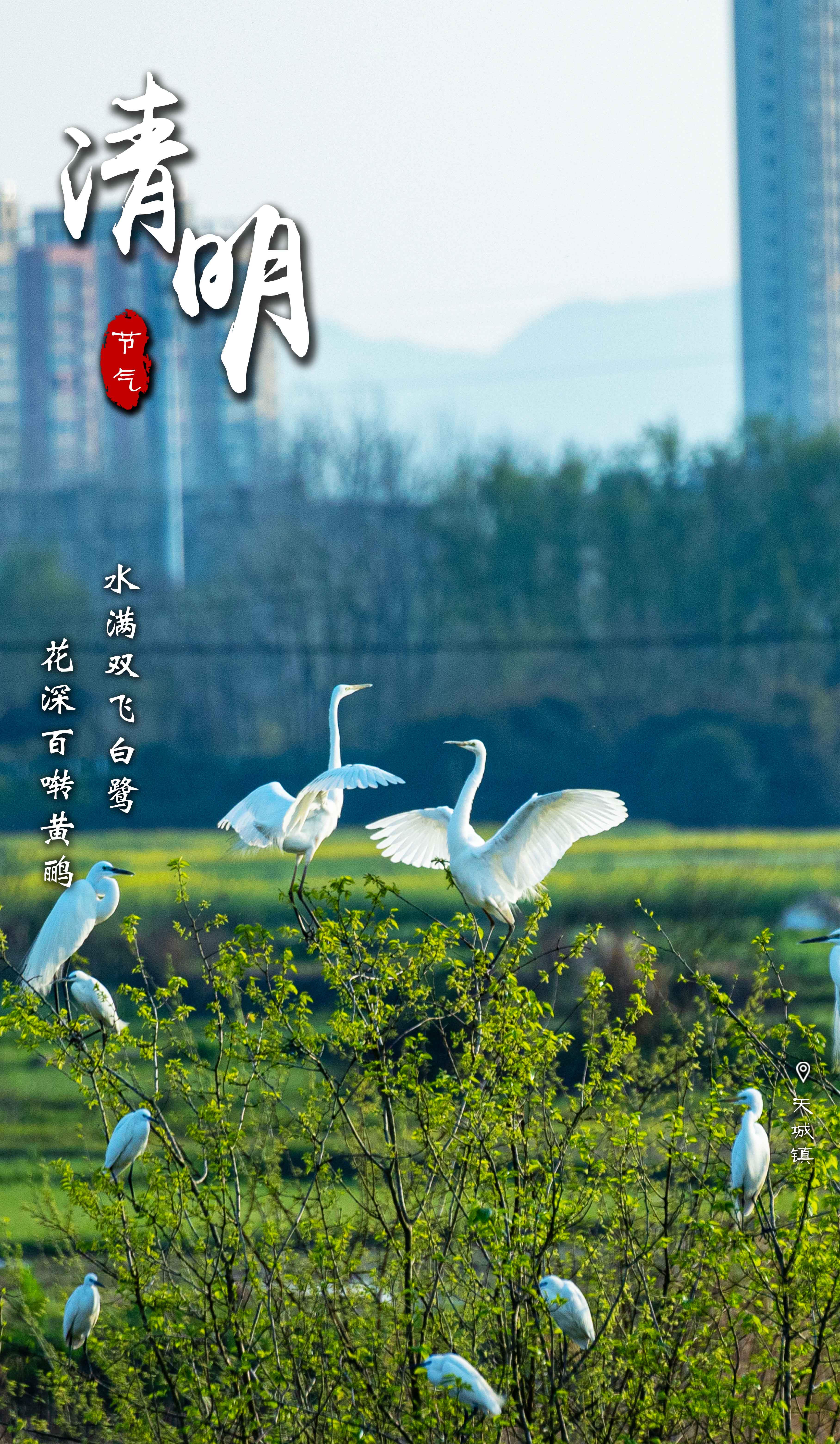郊外白鹭翩跹,