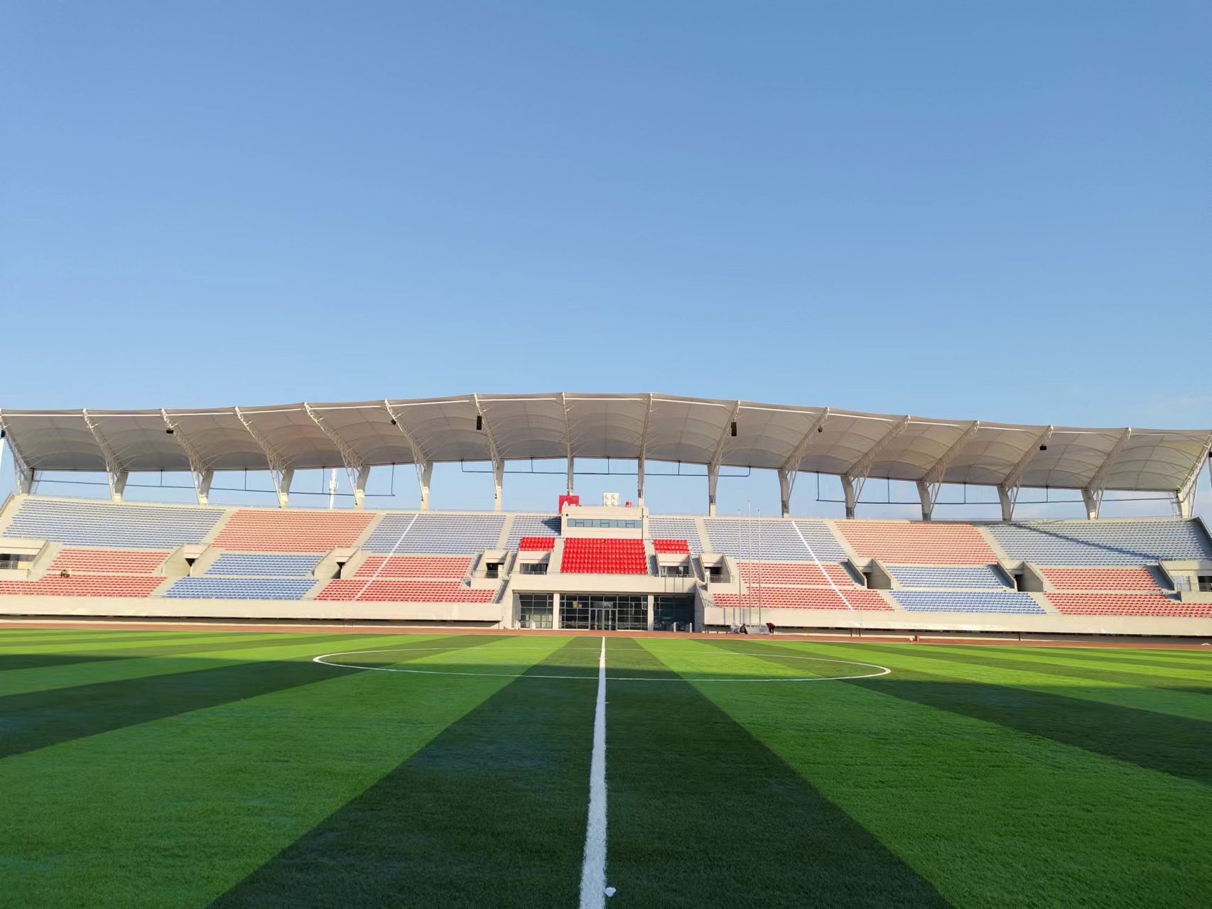 照明系统全面焕新,配备48台1500W专业球场灯及星曜灯、维修灯,实现赛场无死角高亮度照明;外围加装高脚灯,提升夜间通行安全。场馆同步升级替补席、电子记分、电子换人牌等专业设备,完成更衣室、主席台、指挥室装修,完善赛事服务功能。