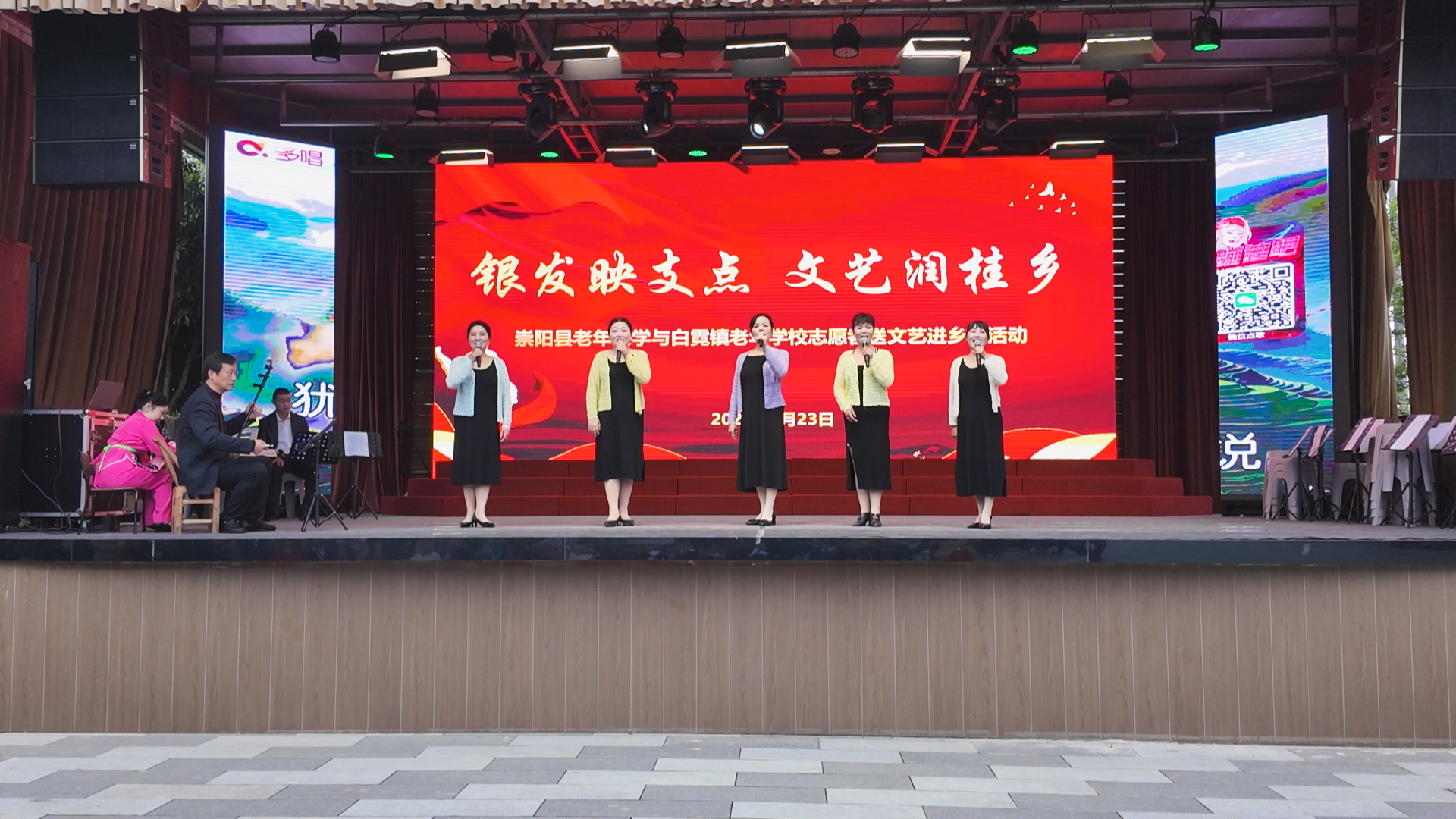 4月23日上午,崇阳县老年大学与白霓镇老年学校在白霓镇油市村委会文化广场联合举办“银发映支点 文艺润桂乡”主题文艺联谊活动,为当地群众献上一场精彩纷呈的文化盛宴。