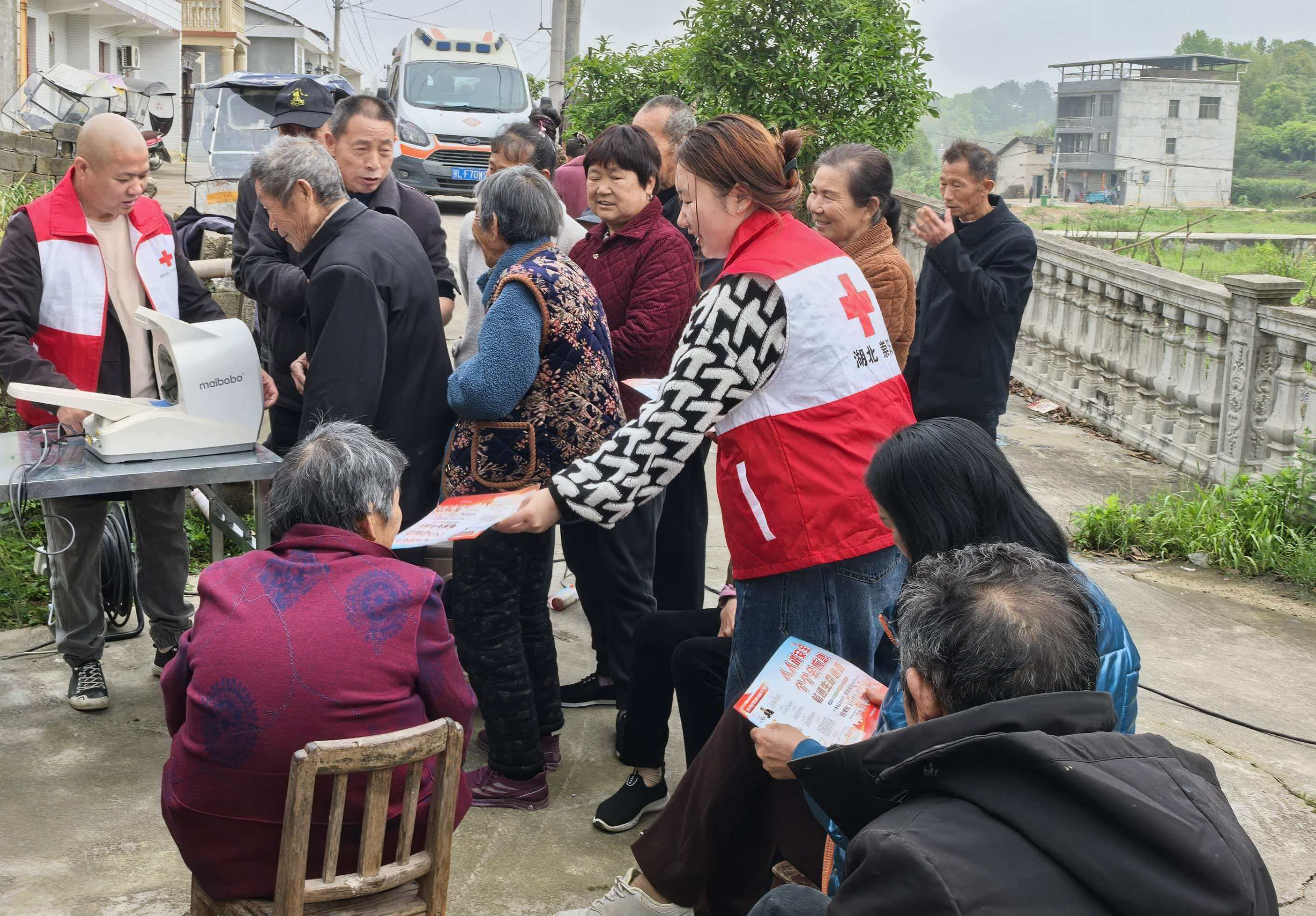 4月24日,崇阳县肖岭乡卫生院义诊服务工作队走进三角村开展义诊活动,为当地村民送上健康关怀。