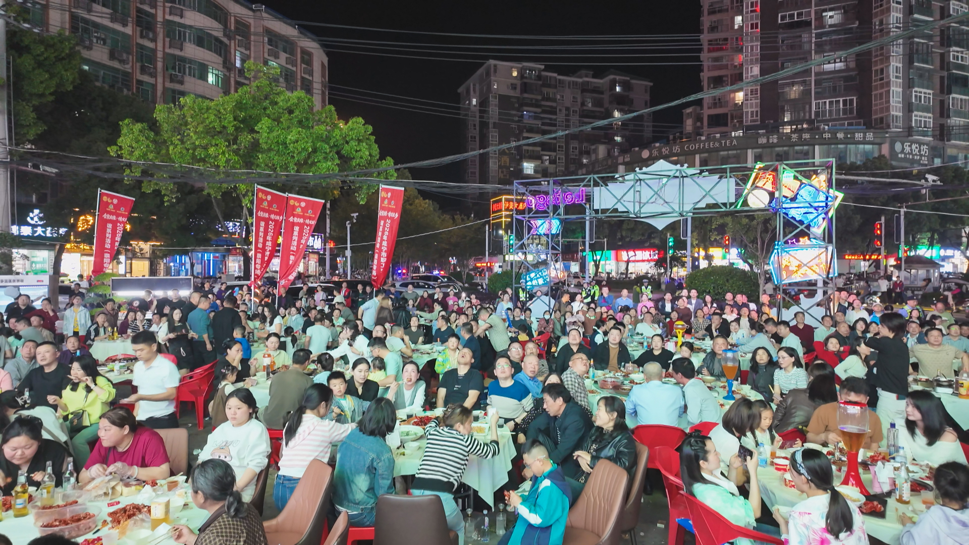夜幕初垂,华灯璀璨。作为此次人流量最集中的观赛区,星光夜市早已热闹非凡,成为崇阳夜间最具活力的打卡地。赛事开始前,一场创意十足的“舞蹈炸街”表演率先点燃现场氛围,吸引了大批市民驻足围观、拍照留念。