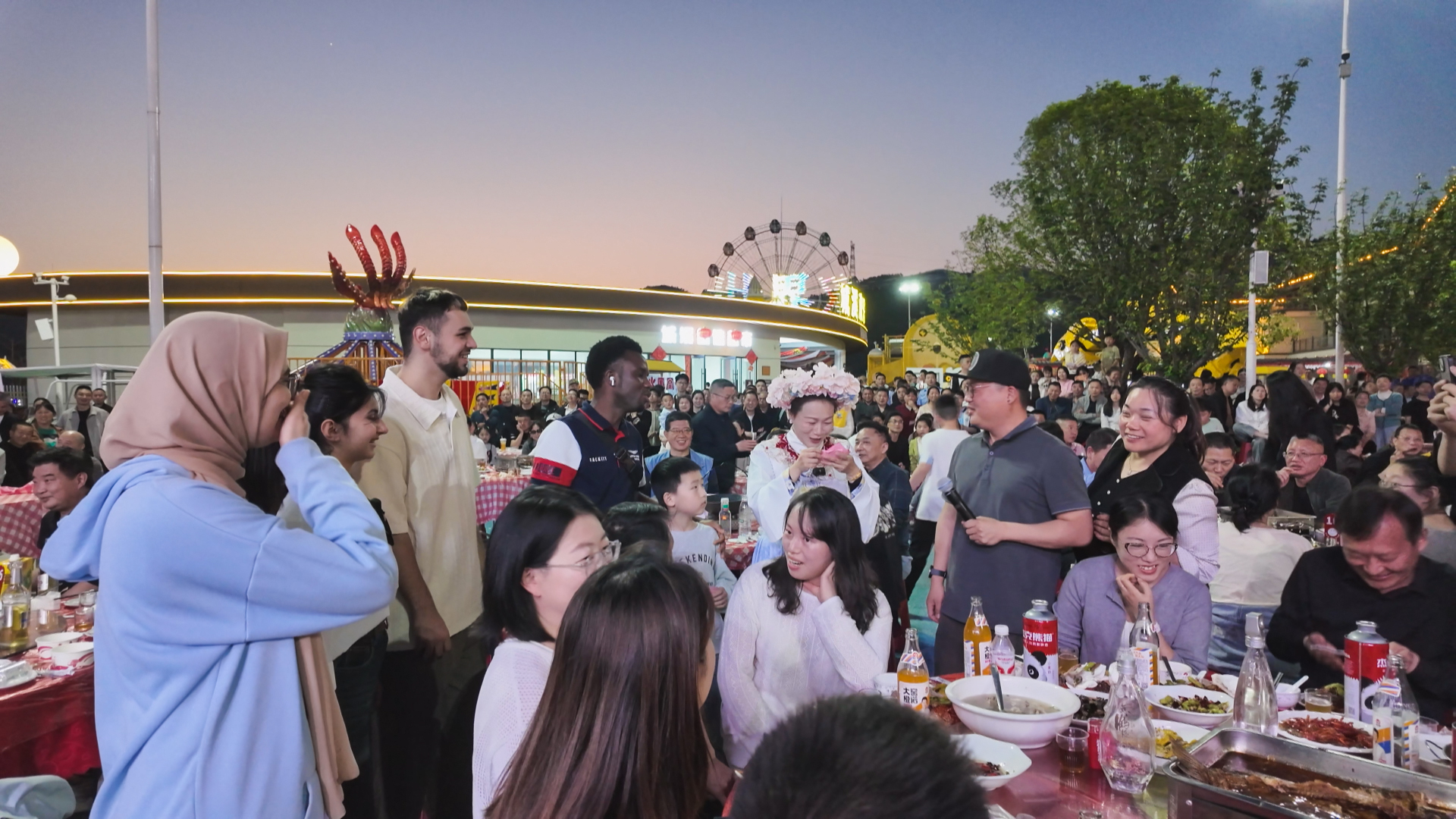 除星光夜市外,佳安广场、大集广场、金泰广场、天城公园、城溪乐园等五大夜市观赛点同样人气爆棚,各有特色、亮点纷呈。其中,城溪乐园观赛点,几名国际友人专程前来观赛,与身边的市民球迷交流互动,跟着大家一起为球队呐喊、鼓掌,沉浸式感受“楚超”赛事的魅力与崇阳市民的热情。各大观赛区以亲民的观赛氛围,便捷的区位优势吸引了周边居民和游客纷纷前来,全家围坐观赛、休闲畅谈,尽显烟火温情。