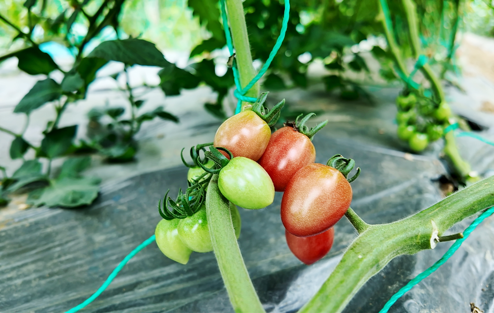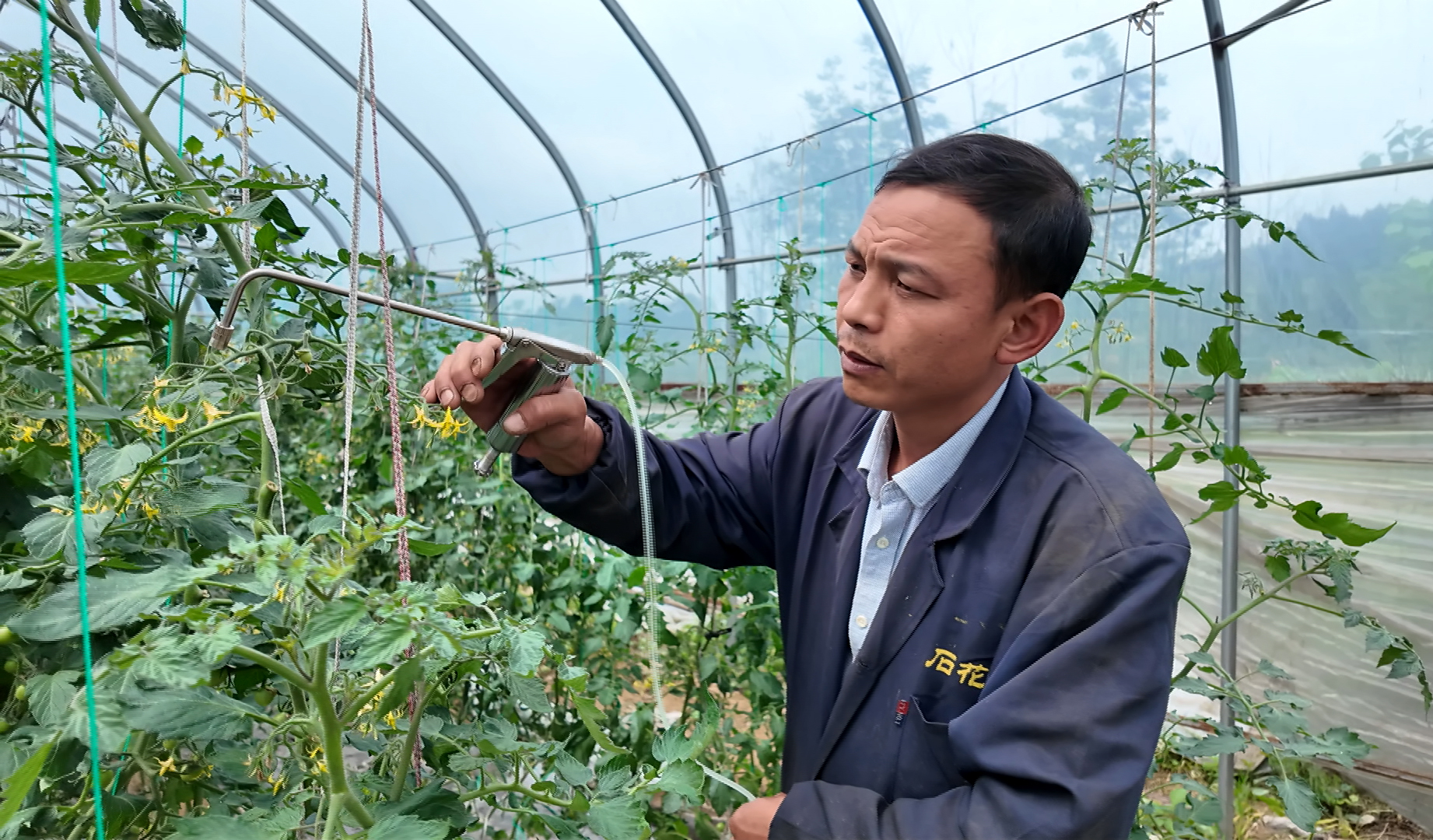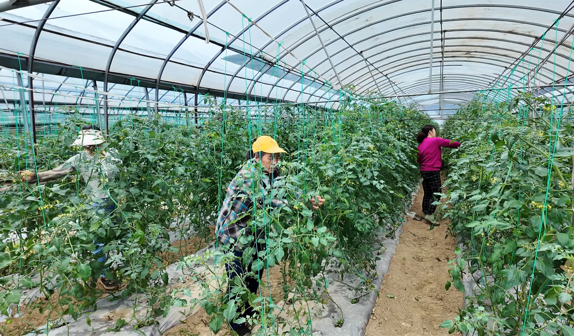 4月28日,走进大市村伊轩番茄采摘园,暖意扑面而来。一排排小番茄藤蔓整齐攀爬,串串青红相间的果实缀满枝头,饱满鲜亮、长势喜人。园子里,杨利平正在细心开展人工辅助授粉,抢占最佳授粉窗口期,保证后期果实坐果整齐、果形周正,实现产量稳产、品质创优。