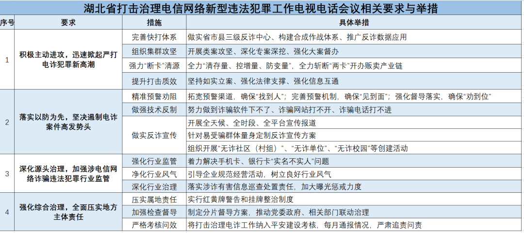 ▲湖北省打击治理电信网络新型违法犯罪工作电视电话会议相关要求举措图解