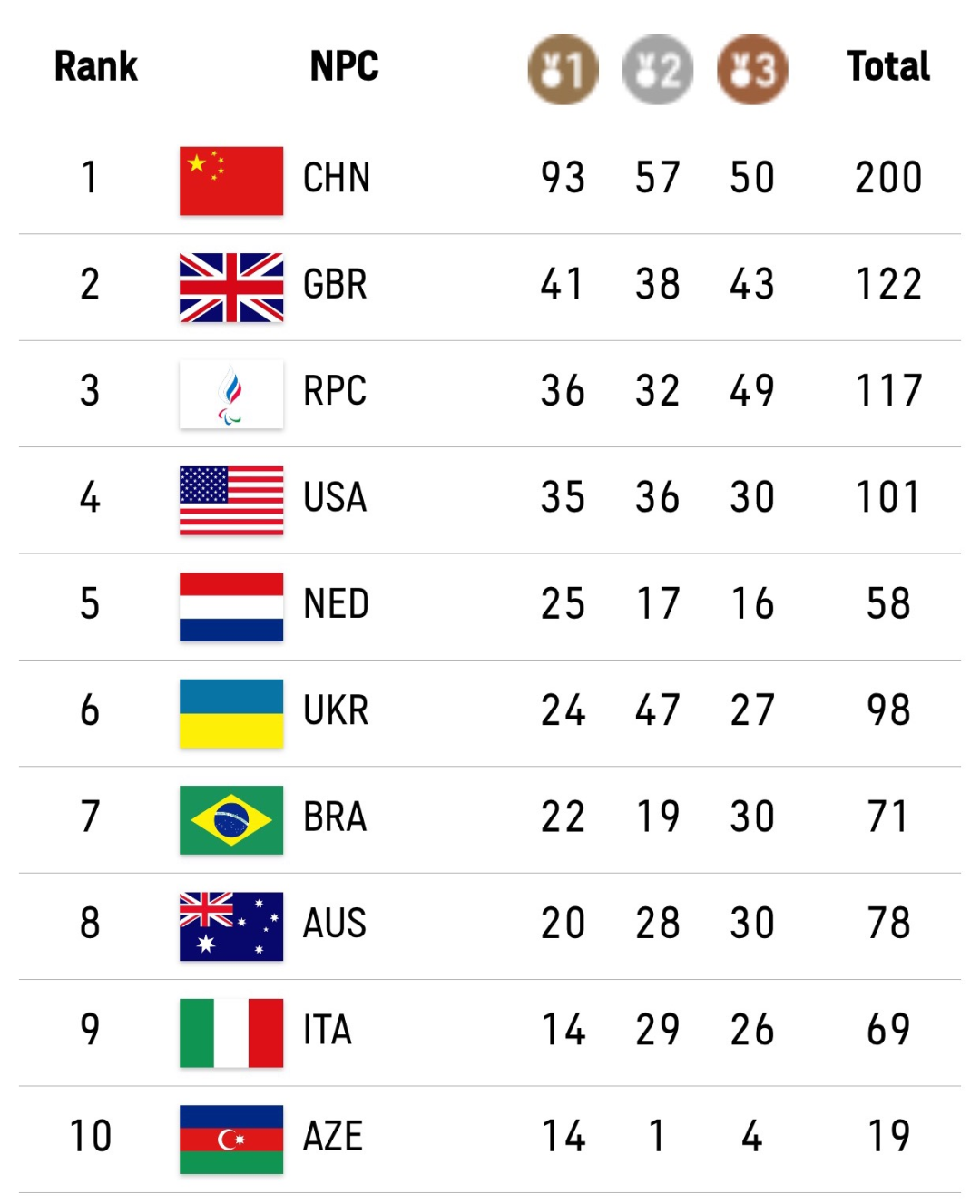 200枚!中国队奖牌数断层式第一! 2021-09-05 08:43 付波 0 在9月4日晚结束的 东京残奥会女子轮椅篮球决赛中 中国队摘得银牌 这是中国女子轮椅篮球队 首次登上残奥会领奖台 祝贺! 截至9月4日20点50分 中国队已获得93金57银50铜 总奖牌数达到200枚 位居奖牌榜第一! 为你们骄傲! 中国队,继续加油! 来源:科普中国