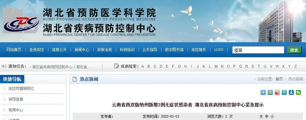 来源:湖北省疾病预防控制中心官网