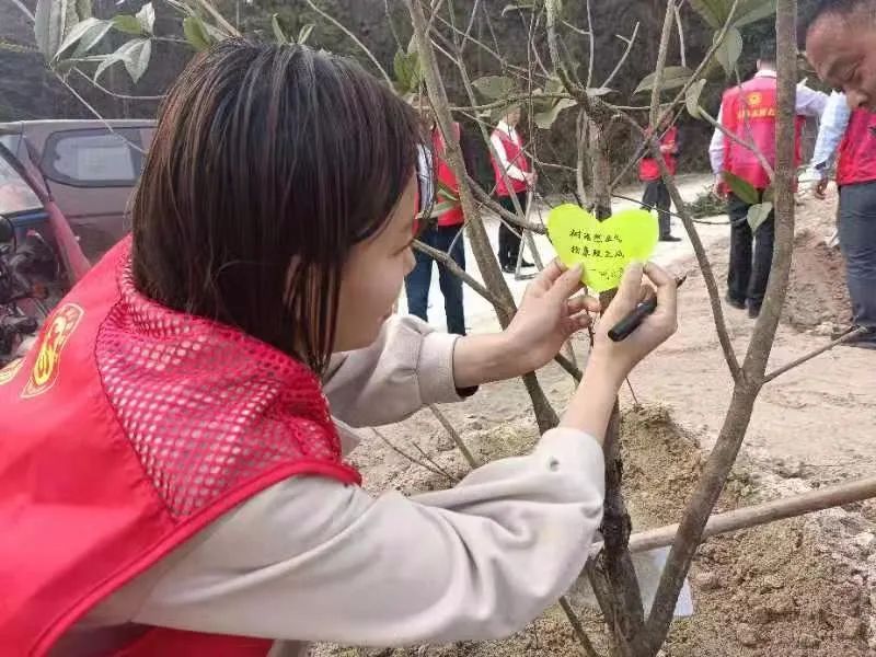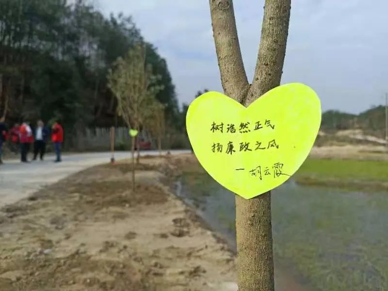 随后,纪委委员带领青年党员干部在小卡片上写下廉政寄语,并署上自己的名字,挂在自己亲手栽种的树苗上,表达自己清廉清正的决心和信心。
