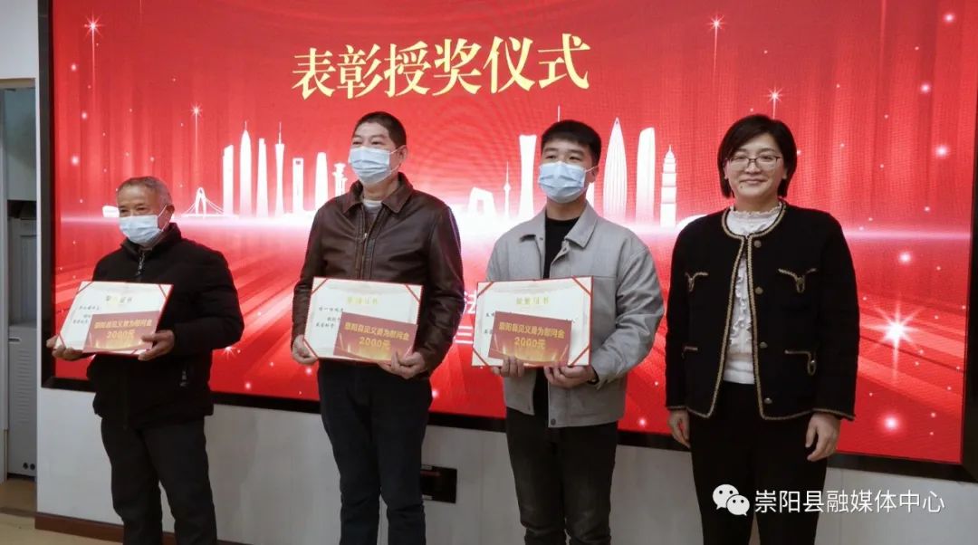 为进一步弘扬中华民族见义勇为传统美德,展示崇阳人民的精神风貌,彰显社会正能量,3月21日,县委副书记、政法委书记梁薇为谭永耀、周一苇、王世峰颁发见义勇为先进个人奖。