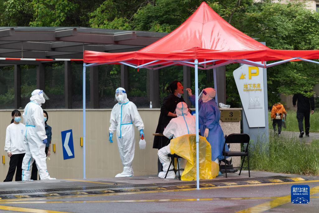 5月11日,在上海浦东新区北蔡镇乾景雅园小区,居民做核酸采样。新华社记者 金立旺 摄