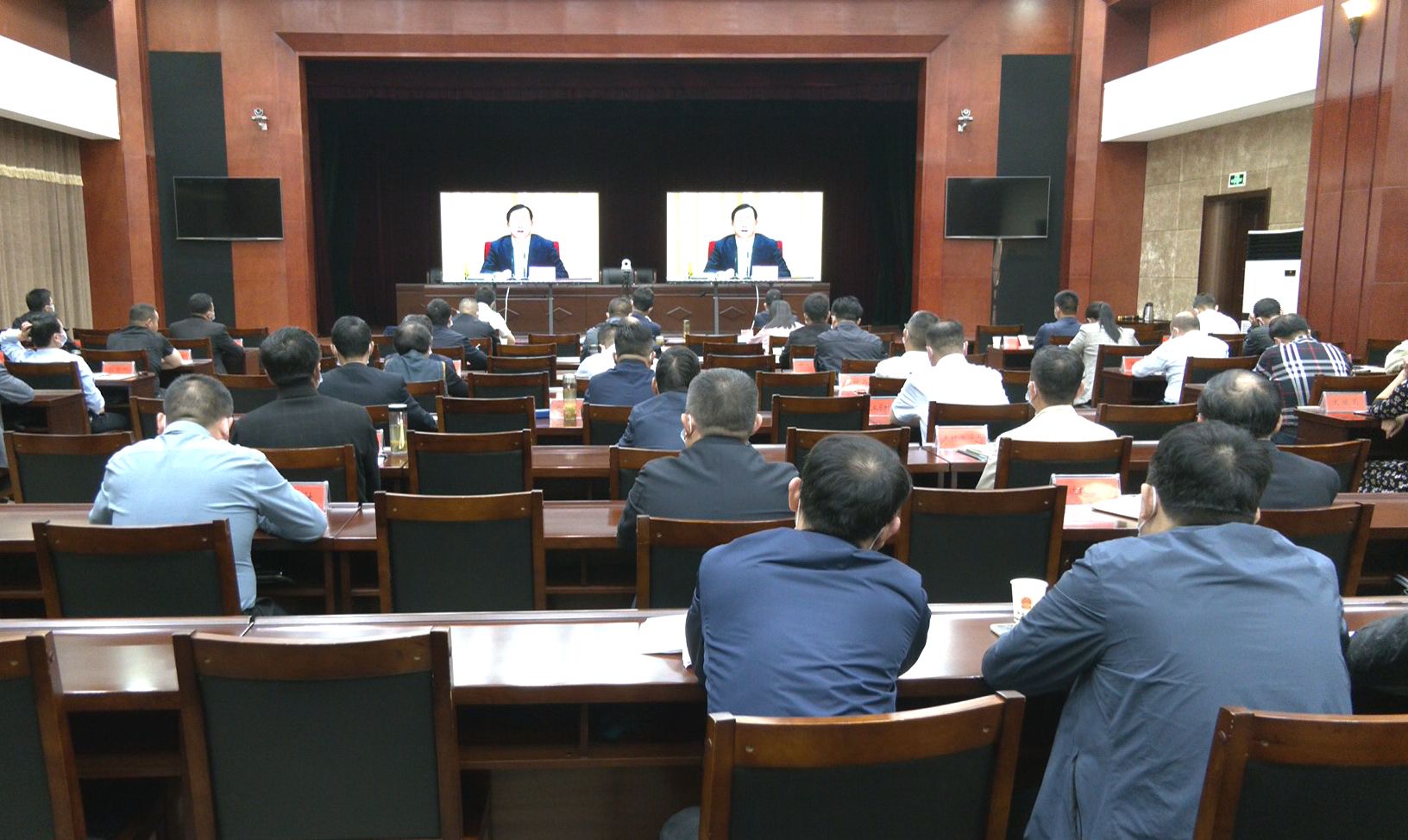 5月17日,崇阳县组织收听收看全省“三区三线”划定工作电视电话会,县委副书记、县长徐望,县委常委、副县长汪新虎在崇阳分会场参加收听收看。